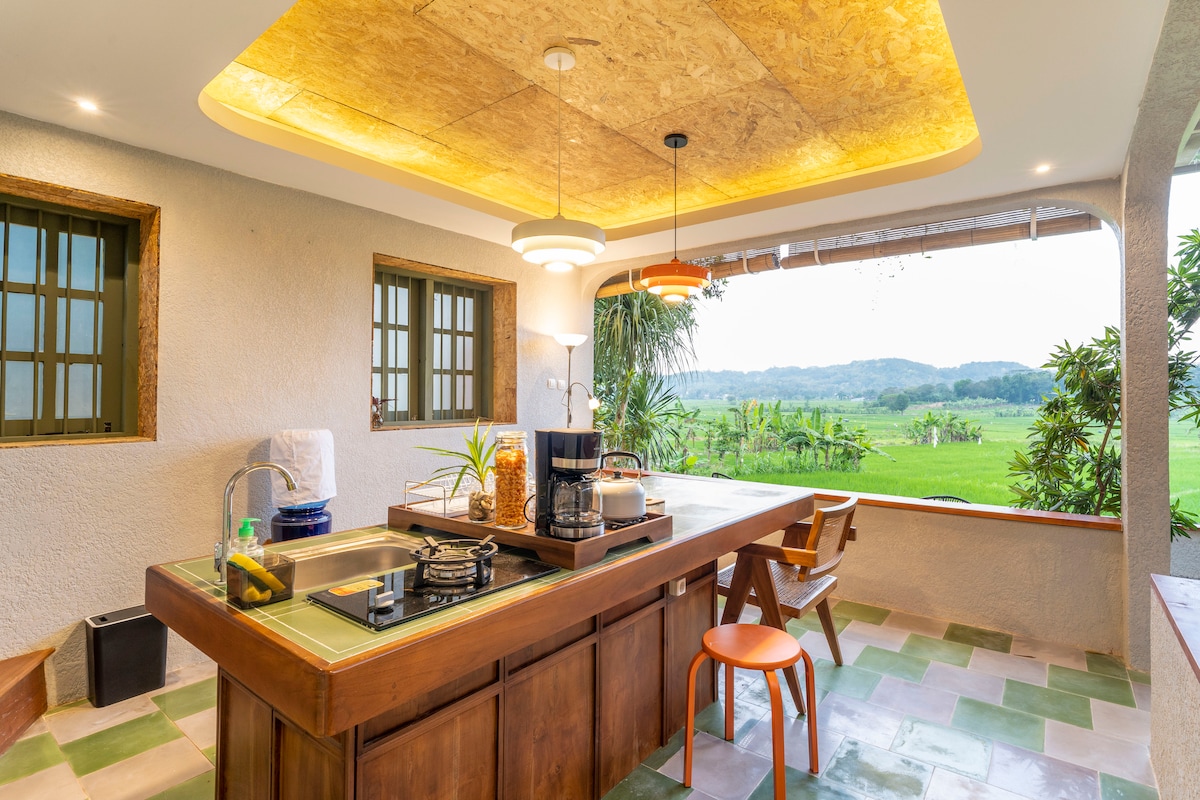 Insa t-tħassib kollu tiegħek f 'dan il-post paċifiku. Il-kunċett ta' villa b' natura sabiħa u veduti mill-isbaħ, flimkien ma' arkitettura ddisinjata b 'sens rustiku u dekorazzjonijiet li jirriflettu l-għerf lokali. Għandna 6 vilel fiż-żona, din il-villa mdawra b' veduta tal-għelieqi tar-ross ta' 10ha. Tista 'tħoss l-ispazju ta' għalqa tar-ross ekoloġika, tara lill-bidwi jagħmel ix-xogħol tiegħu, tara xi annimal tar-raħal jekk inti xxurtjat.
