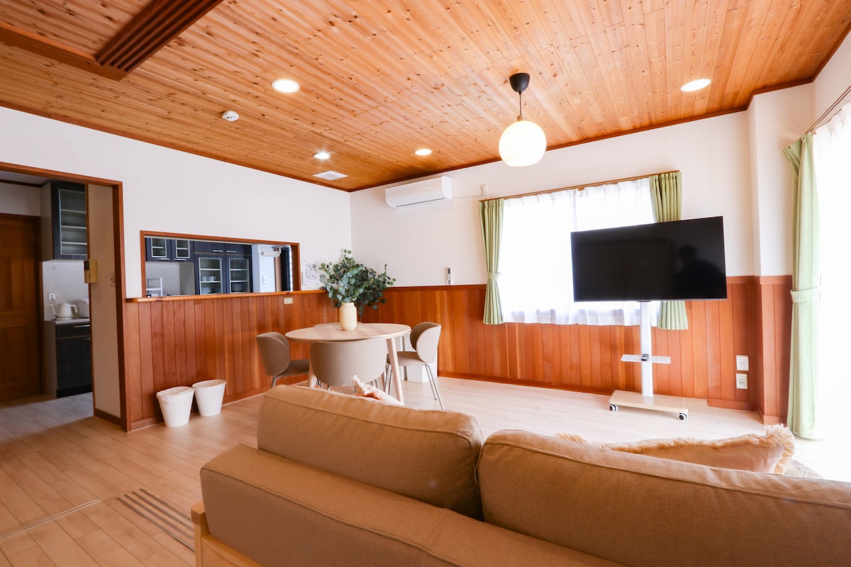地元の画家のアトリエを改装して貸切宿を作りました。コンセプトは泊まれる美術館です 家中に展示しているアートとジブリの世界観を楽しめます 人気のジブリパークにとても近くて車で10分です(徒歩30分) 一棟丸々貸切です 人気の温泉施設とファーマーズマーケットに徒歩10分です 18畳の大スペースリビングと18畳のダイニングキッチン 65インチの大型モニターテレビ(LG)設置 三口コンロの広々フルキッチン 200平方メートルの一軒家 全室6台エアーコンディショナー設置 高速Wi-Fi完備 電動自転車を9台用意しています(1日1000円、2軒の宿で共有していますので予約が必要です) 駐車場3台(敷地内1台、敷地外2台) こちらのユニークな家族向けの宿泊先で、思い出を作りましょう。 設備 ・冷蔵庫 ・洗濯機・ガス式乾燥機 ・電子レンジ ・水洗トイレ(ウォシュレット) ・炊飯器 ・電気ケトル ・ヘアードライヤー ・ホットプレート ・オーブン ・フライパン ・鍋 ・グラス ・食器類 ・コードレス掃除機