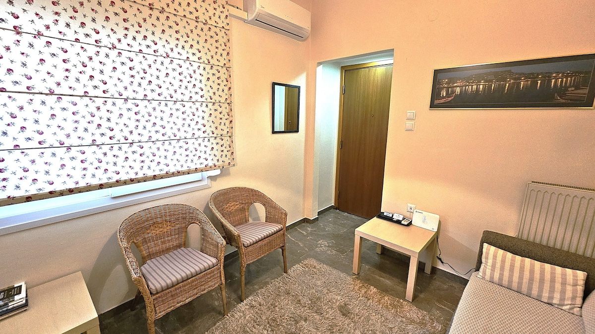 Appartament fit-tieni sular b'gallarija u veduta panoramika li tieqaflek nifs. Ideali għal koppji jew familja bi tifel jew tifla jew tnejn. Tinsab f'viċinat kwiet qrib iċ-ċentru. Atmosfera rilassanti u kumdità. Spazju liberu - parkeġġ għal karozza waħda F'distanza qasira hemm attrazzjonijiet bħat-Teatru ta' Filippi (16 km), il-Bajja ta' Ammolofoi (26 km) u l-eqreb bajja organizzata f'5 km (il-Bajja ta' Kalamitsa)