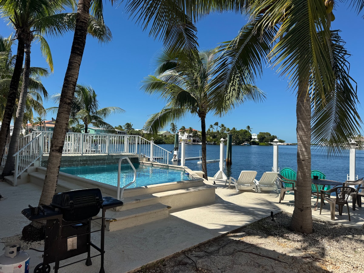 3BR/ 2 BA stilt dar fuq kanal ċar kristall b' veduti tal-ilma miftuħ fuq ilma fond b' dgħajsa ta' 30 pied tiżloq fuq cul de sac. Distanza qasira bil-mixi sa diversi ristoranti/bars, ħwienet u l-Klabb Cabana b' bajja, pixxina u hot tub. Magħluq f' terrazzin faċċata tal-ilma b' għarix tat-tiki. Tajjeb għat-tfal, b' ġugarelli u siġġu għoli. Parkeġġ kopert. Il-klijenti meħtieġa jiffirmaw ir-Regolamenti għall-formola Key Colony Beach.