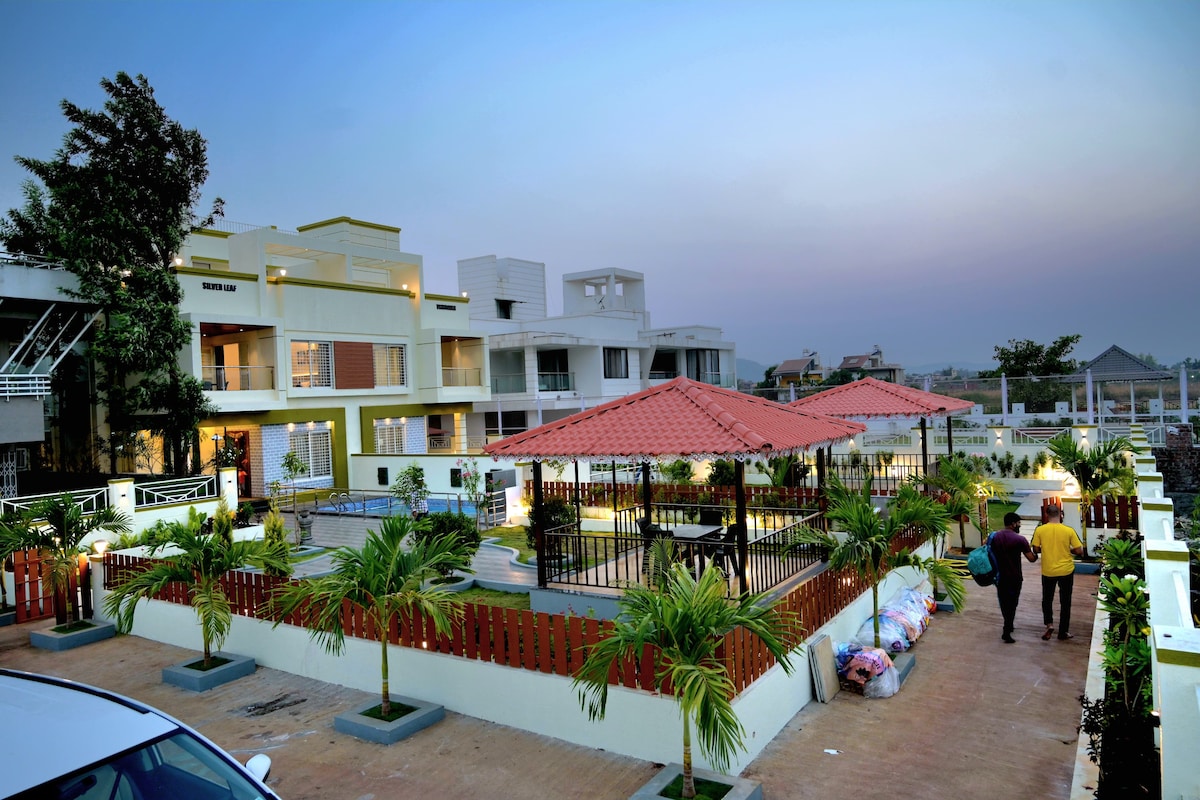 Dan il-post eleganti u uniku jħejji t-triq għal vjaġġ mill-isbaħ. Għandna l-kumditajiet kollha bħal pixxina, Gym, Żfin tax-xita, kriket. Il-post tagħna mdawwar bis-siġar u l-muntanji. Post perfett għar-rilassament għal tmiem il-ġimgħa. Barra minn hekk, il-punt Bhimashankar Trek jibda 4 km 'il bogħod minn hawn