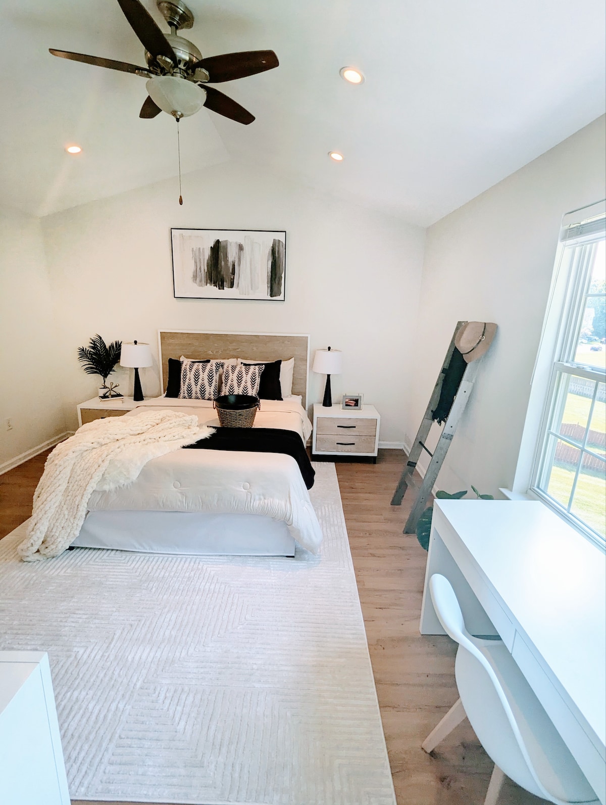 HIGHLIGHTS - This listing is for the master bedroom with ensuite bth. 30+ day stays welcome, fully stocked kitchen (see amenities), HDTV, workstation (dual monitors available upon request), 1000 Mbps high speed wifi, close to the highway, restaurants, shopping, hospitals, local schools/universities, and major corporations. Central location to neighboring states. Go to section "Where You'll Be" and click on "Show more" to view nearby hospitals, schools, places to visit, etc.