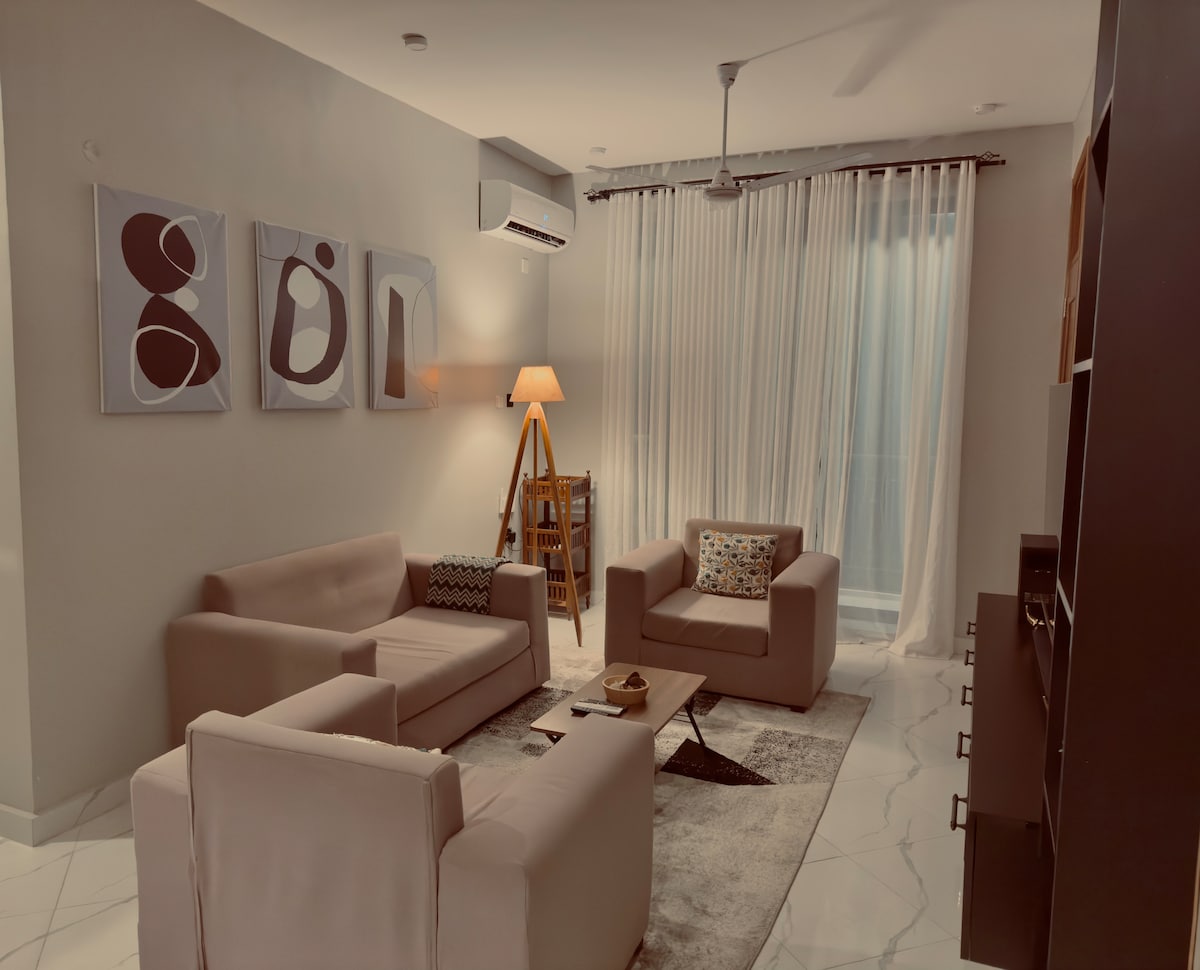 Qiegħda 'l fuq mill-belt, tħallat l-eleganza moderna mal-faxxinu komdu. Iddisinjat għal dawk li jħobbu l-għajxien spazjuż u l-veduti mill-isbaħ, inżul ix-xemx u d-dwal tal-belt li jteptepu. It-taħlita ta' aċċenti rustiċi moderni u sħan, b' affarijiet u dekor vibranti li jżidu pop ta' sħana u enerġija, jagħmlu ż-żona tas-salott miftuħa u l-kċina mgħammra perfetta biex tirrilassa fl-istil. Qrib Palm Village, qrib il-bajja, Mikocheni Plaza u Shoppers Plaza, madwar 15-il minuta miċ-ċentru tal-belt.
