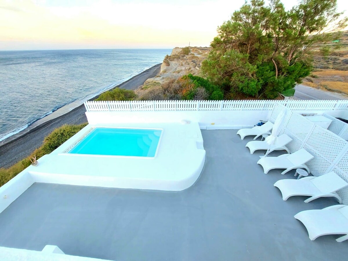 Il-villa Sky blue faċċata tal-bajja li għadha kif ġiet irranġata għandha pixxina privata li tinsab fuq bajja sewda twila bir-ramel, 6 minuti 'l bogħod mill-villaġġ famuż ta' Oia. Veranda privati kbar, aċċess għall-bajja, veduti sbieħ tax-xemx u tax-xemx! 2 sulari, 3 kmamar tas-sodda,3 kmamar tal-banju, kċina mgħammra b' kollox, aċċess għall-bajja, parkeġġ. Vaganza perfetta 'l bogħod mill-folol, bħal tbaħħir' il bogħod!Id-djar l-oħra tagħna, Island blue,Santorini blue,Eternity,Serenity, Captains blue, Secret Garden u Sailing blue li jinsab ħdejn il-pixxina privata wkoll.