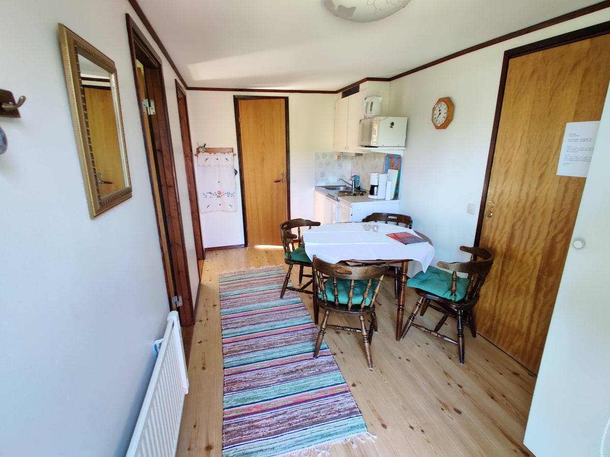 Merħba f'akkomodazzjoni komda qrib Borgholm, Alvaret u Solliden. Inti se tkun qed toqgħod f'dar tal-irziezet sabiħa fuq art maqsuma ma' oħrajn. Alvaret jinsab f'10 minuti mixi fejn jinsabu l-Fdalijiet tal-Kastell u Solliden. Borgholm, b'ħajja mimlija, tinsab madwar 3 km 'il bogħod. Hemm ċikletti li tista' tissellef. Hemm mogħdija għar-roti lejn il-belt. Il-kamra hija ta' 16 m2 u l-gallarija 8 m2. Il-kamra għandha friġġ, microwave u ketel. Il-kamra tal-banju (toilet u banju) u l-aċċess għall-ilma jinsabu fid-dar tal-host b'bieb separat.