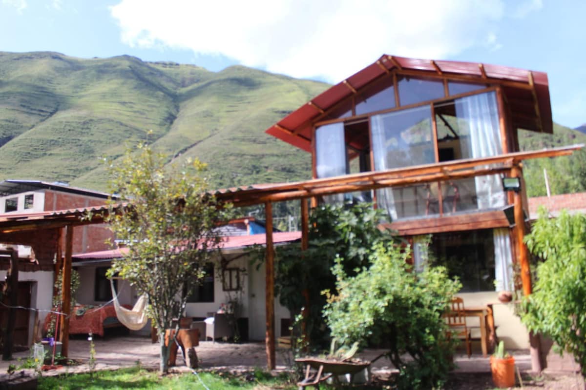 Id-dar tinsab 10 minuti 'l bogħod mill-villaġġ ta' Pisac, il-post huwa mdawwar bin-natura u l-kwiet; Id-dar għandha l-kumditajiet kollha biex tagħmel iż-żjara tiegħek pjaċevoli; b'veduta sabiħa tal-muntanji; dar mibnija b'materjali ekoloġiċi, f'adobe, injam u ġebel, minbarra rfinar ta' kwalità għolja. Il-Bungalow mgħammar b'kollox, kamra tas-sodda, kċina, salott, kamra tal-ikel, televiżjoni, ilma sħun. Internet b'veloċità għolja u terrazzin spazjuż b'hammock.