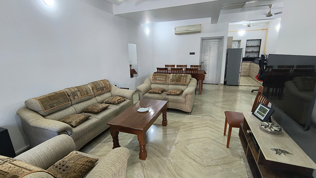 Appartament spazjuż mgħammar tajjeb b 'kmamar tas-sodda AC b' Dresser/Cupboard, sodda King Size b' kamra tal-banju mehmuża. Gallarija sabiħa breezy u sabiħa b 'veduta tal-ġnien, Wi-Fi b' xejn, iħoss li jħobb id-dar tiegħek stess. Appartament mingħajr nemus u mingħajr trab. Dal-post tajjeb ħafna għall-familji NRI. Paċifika, komda u sigura. Kċina bl-appliances u l-utensili kollha. Suq tal-grocer u tal-ħxejjex f 'distanza bil-mixi. Skont ta 'kull xahar u kull ġimgħa fir-rati. Ħin flessibbli taċ-check-in.