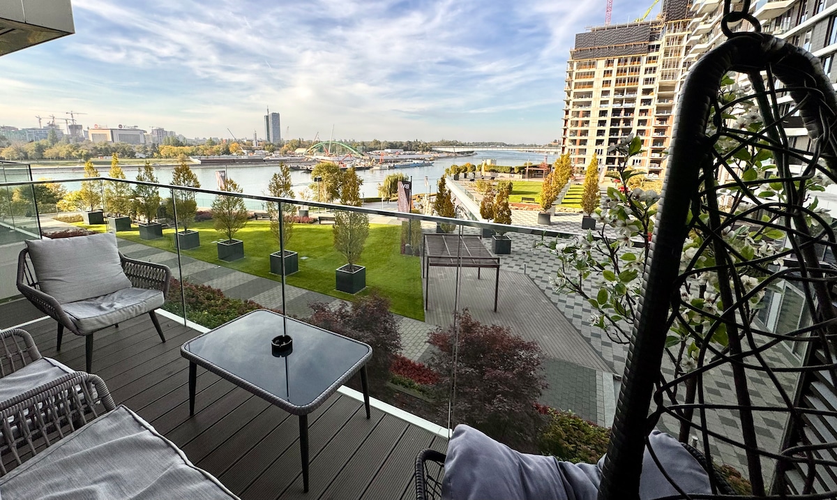 Merħba f' appartament lussuż b' kamra tas-sodda waħda fil-bini faċċata tal-ilma ta' Belgrad, kumpless b' veduta panoramika mill-isbaħ tax-Xmara Sava. L-appartament huwa ġdid fjamant, mgħammar b' kollox u jikkonsisti f' salott marbut mal-kċina u l-kamra tal-ikel, kamra tas-sodda waħda, kamra tal-banju, kamra tal-ħażna u gallarija.