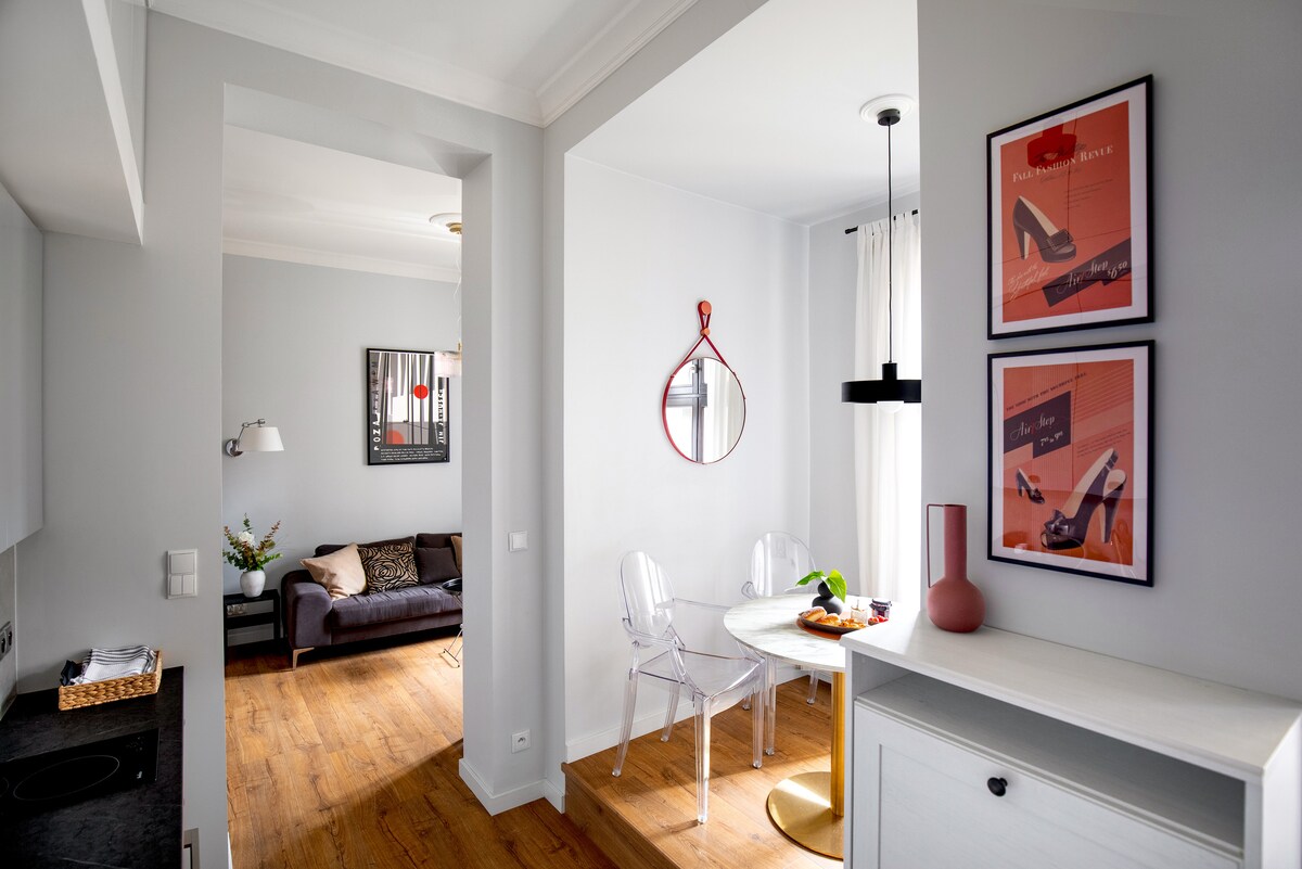 Erġa 'ixgħel sufan tal-kabriol antik f' żona tal-għajxien mimlija dawl imżejna b 'twapet tal-ġilda tan-nagħaġ u għamara vintage. L-aċċenti upcycled u r-ritratti minimalisti kollha jagħtu ambjent eklettiku għal dan l-ispazju mmudellat mill-ġdid. L-appartament jinsab f' tenement house tas-seklu 19, fid-Distrett tal-Belt il-Qadima bejn il-Pjazza Ewlenija u ż-żona l-qadima tal-Kwartier Lhud. Mixja fit-toroq b' dehra speċjali b' ħwienet tal-antikitajiet mhux tas-soltu, galleriji tal-arti interessanti u kafetteriji shabby-chic.