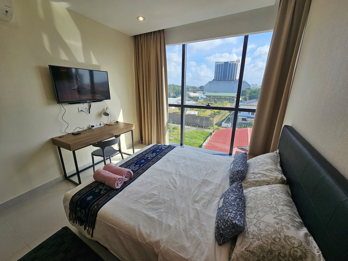 Merħba f' 7Ten Charming Studio Retreat li tinsab fil-qalba vibranti tal-belt! Dan l-ispazju mill-isbaħ huwa perfett għall-vjaġġaturi jew għall-koppji li qed ifittxu li jiskopru dak kollu li toffri Kuching, Sarawak. Idħol fil-post u nilqgħuk b' atmosfera eleganti u li tilqgħek, kompluta b' għamara moderna u affarijiet maħsuba matul iż-żmien kollu. L-istudio għandu sodda komda ta' daqs queen, kċina żgħira mgħammra b' kollox u żona komda fejn tista' tirrilassa wara jum ta' żjara.