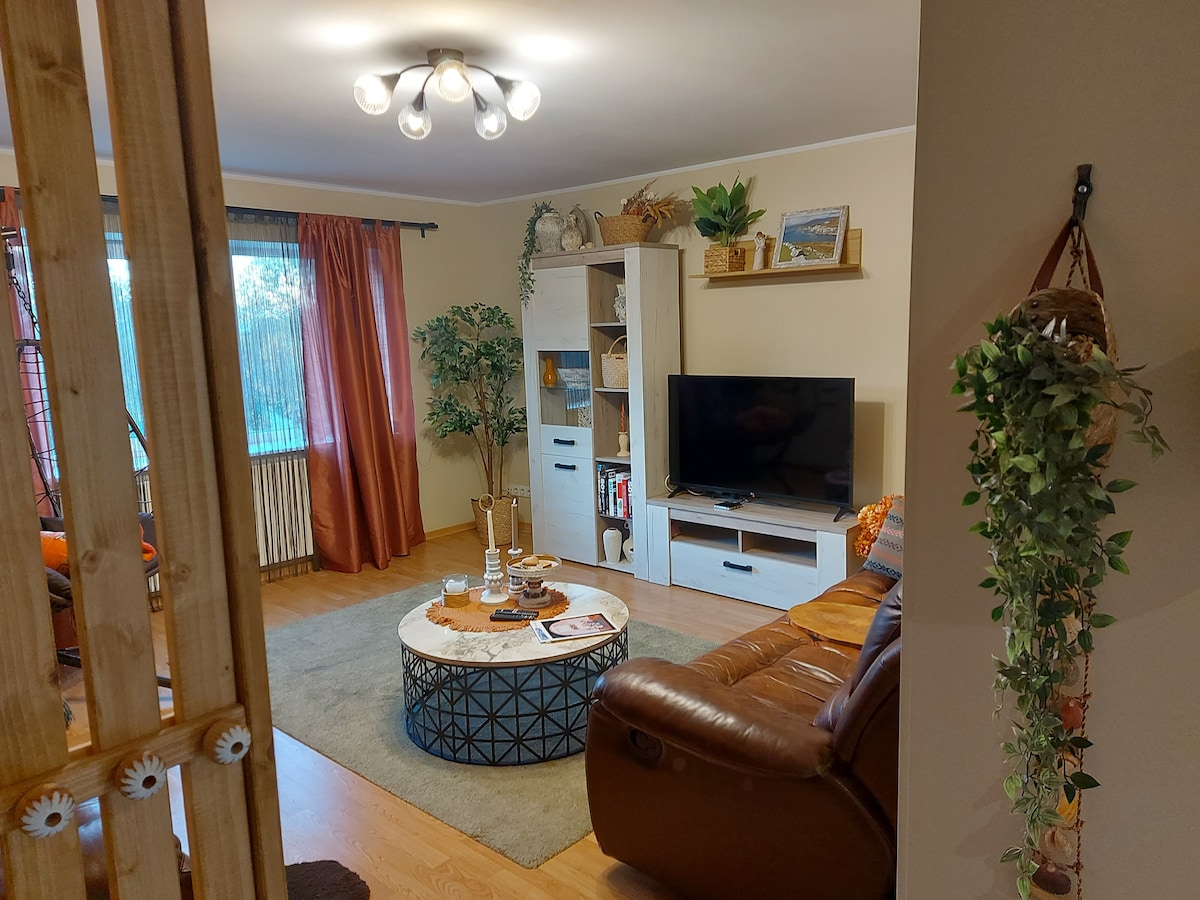 Iltaqa 'mad-dar tiegħek' il bogħod mid-dar. Dan l-appartament komdu jinsab madwar 4min sewqan jew 15-il minuta mixi mill-pjazza tal-belt. Jiġi b 'TV, WiFi, kċina, kamra tas-sodda waħda b' sodda doppja u pack´n 'play għat-trabi, iġbed is-sufan fis-salott u ż-żona fejn toqgħod bilqiegħda fuq il-gallarija. Sandbox għat-tfal wara l-bini. Il-parkeġġ pubbliku bla ħlas huwa disponibbli. Il-kċina tinkludi oġġetti tal-kċina, forn, friġġ, microwave u magna tal-kafè. Żewġ swieq kbar (Rimi u Coop) li jinsabu 100 metru 'l bogħod mill-appartament.