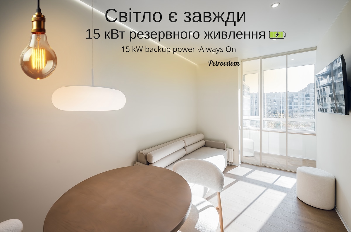 Id-dawl dejjem mixgħul! Dar stilizzata u dħulija b'pixxina Infinity tas-sajf u terrazzin kbir ġewwa Kyiv, Rusanivski Gardens. Post komdu fejn taqbad mal-linji tat-trasport — faċli biex tasal għalih minn kullimkien, 10 minuti biss bil-karozza minn Podil. Ġewwa hemm kċina spazjuża li tiflaħ bħala salott b’fireplace, 2 ikmamar tas-sodda, logħba tal-futbol fuq il-mejda u PlayStation 5. Fit-territorju hemm terrazzin ta’ 40 m², kanupew għal 2-3 karozzi u gradi awtomatiċi. L-istazzjon tal-metro ta' Livoberezhna jinsab 3 km 'il bogħod. Id-dar mhix għall-kiri għal gruppi storbjużi! Ma tistax tixgħel mużika b'volum għoli fid-dar u fuq barra