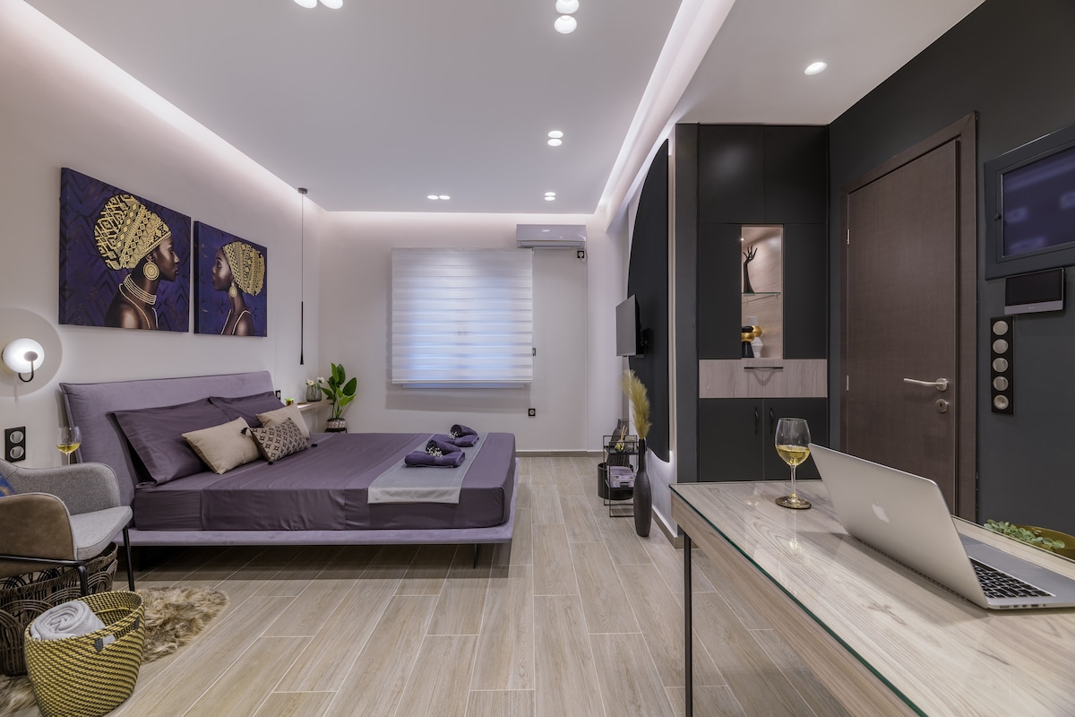 Irrilassa u rrilassa f' dan l-ispazju kalm u eleganti ġewwa Kypseli. Disinn ta 'ġewwa minimu b' paletta tal-kulur sħuna għar-rilassament massimu. Studio miftuħ ta' 31m2 b' sodda Queen u doċċa spazjuża. Dan il-ħabi romantiku huwa post ideali għall-vaganzi tal-koppji. Qrib it-triq ewlenija għall-mixi taż-żona vibranti ta' Kypseli.