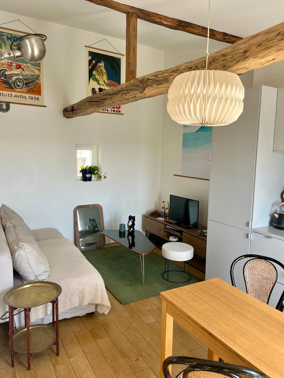 Dan l-istudio żgħir huwa komdu u mimli ħafna biċċiet żgħar ta' storja. Hija pjuttost ċentrali, mdawla li tagħti fuq il-bejt ta' Pariġi u mtejba b' sodda doppja li titla' mas-saqaf. Għandu l-kumditajiet kollha għax huwa abitat barra mill-perjodi tal-kiri u jien inħalli l-affarijiet bażiċi disponibbli għat-tisjir, l-iġjene, il-wifi, eċċ. Ħerqana dwar it-teatru, l-isport u l-kultura, nixtieq nissuġġerixxi post jew kamra fejn tista' tmur u tara.
