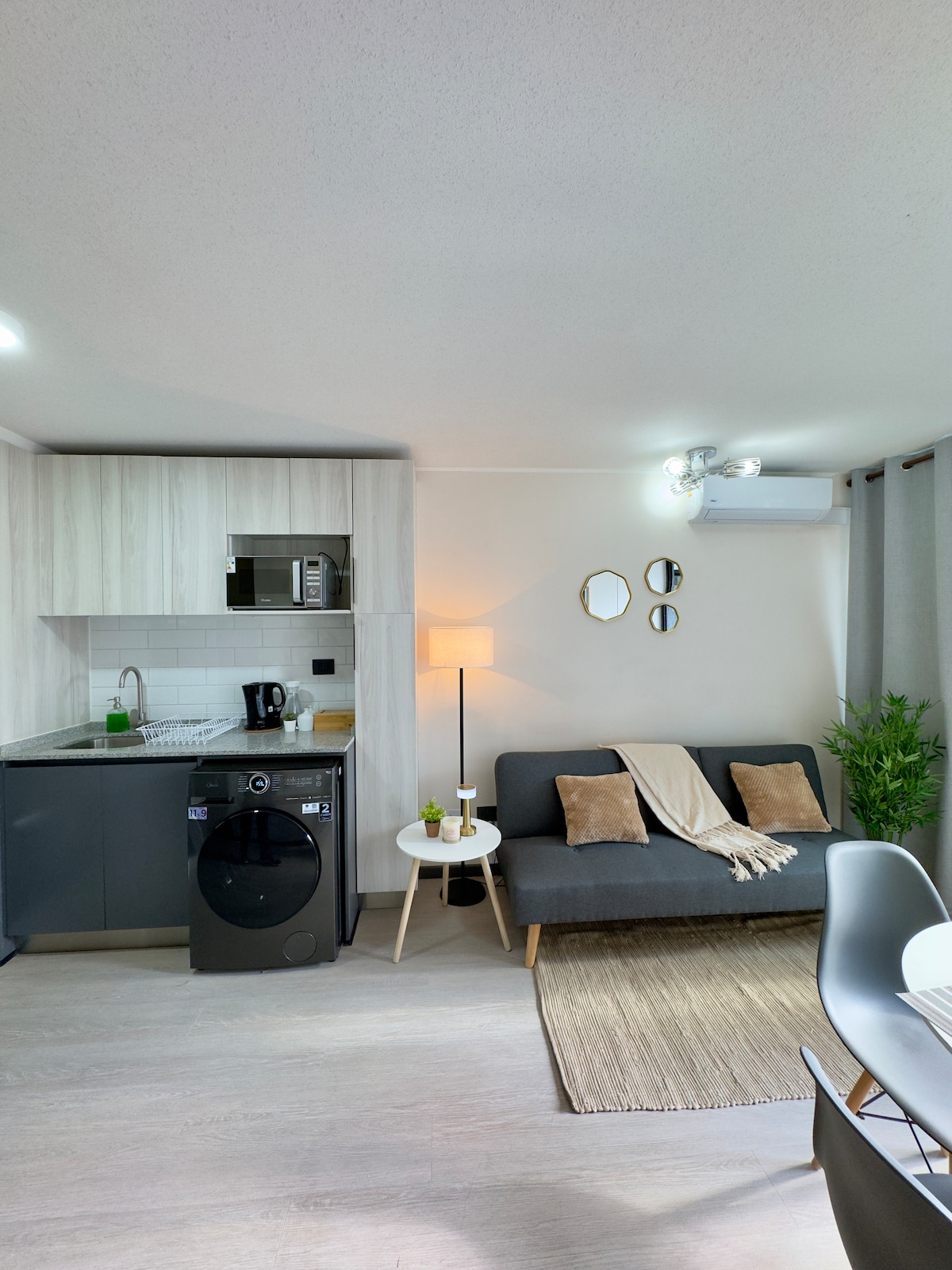Hospédate en un moderno y acogedor depto, totalmente equipado para dos o tres personas, a pasos del Metro Bellavista de La Florida. Perfecto para parejas, viajeros por negocios o escapadas de fin de semana. Cercano a Centros Comerciales, Clínicas, Universidades y Estadios. Es el refugio perfecto para quienes buscan comodidad, conexión y buen gusto. Este depto. tiene la ubicación ideal para el fácil y rápido acceso a la Montaña 🏔️, viñas 🍇 y campo 🌿, sin perder las comodidades de la ciudad.