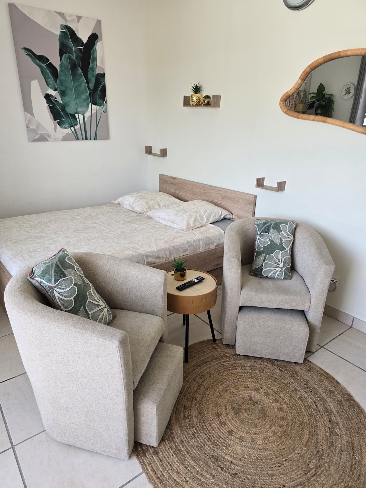 F 'residenza ta' 3 appartamenti dan l-appartament cozy ser iġġib inti sigurtà u trankwillità għall-divertiment jew waqfa tan-negozju. Ideali għal persuna waħda jew għal koppja li se japprezzaw il-kumdità u l-konvenjenzi tal-post. Aċċess rapidu (5 minuti bil-karozza) tal-bypass ta 'Fort de France, u 10 minuti mill-ajruport u diversi żoni industrijali u kummerċjali ta' Fort de France u Lamentin.