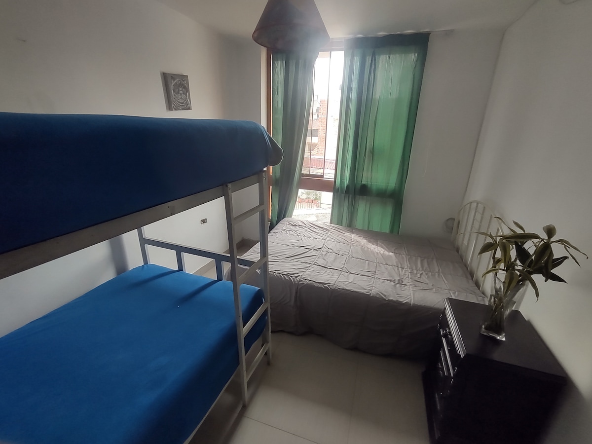 Desde este alojamiento céntrico todo el grupo podrá disfrutar del fácil acceso a todo, ya que estamos ubicados a solo 8 minutos del centro de la Ciudad, ideal para familias, dos adultos y 01 niño, viajes ejecutivos o comerciales, amplia sala de ingreso, excelente iluminación. 3er piso con escaleras directas hacia el apartamento.