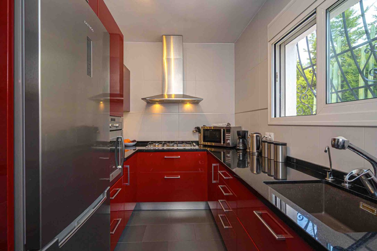 Villa komda b 'pixxina privata f' L'Alfàs del Pí, Costa Blanca, Alicante, Spanja, għal 8 klijenti. B' internet b' veloċità għolja għall-ħaddiema remoti, ideali biex taħdem filgħodu u tgawdi l-bajja wara nofsinhar. 4 ikmamar tas-sodda doppji, 2 ikmamar tal-banju, tojlit wieħed, barbikju, pixxina privata, 2 spazji għall-parkeġġ, ġnien, siġar u terrazzin. Żona residenzjali, ideali għall-vaganzi tal-familja tiegħek. Spiżerija u supermarket 2 minuti. Bajjiet (Benidorm, Altea u Albir) 10 minuti.
