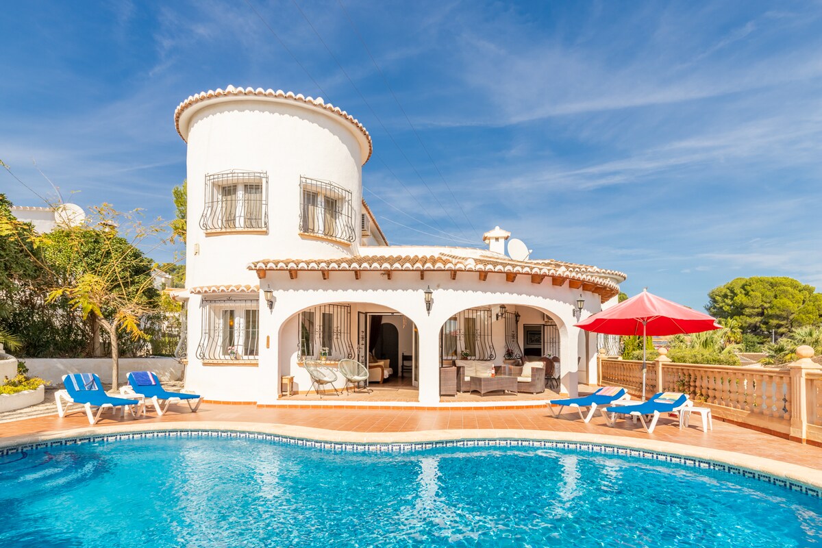 Erġa' ċċarġja ġewwa Moraira . 400 m mill-Baħar Mediterran, mixi 'l bogħod minn ħwienet u ristoranti tajbin: Villa Oasis cove Cap Blanc. Villa spazjuża indipendenti b' sular wieħed b' pixxina privata, komda ħafna, WiFi, f' żona residenzjali esklussiva. Qiegħed fil-bagalja tiegħek maskra tal-għadis u ilbies sabiħ biex tiekol fl-iktar postijiet sbieħ... Ideali għal dawk li jħobbu n-natura, għadis, sport ... Mhux iktar minn 6 persuni. VT-513483-A