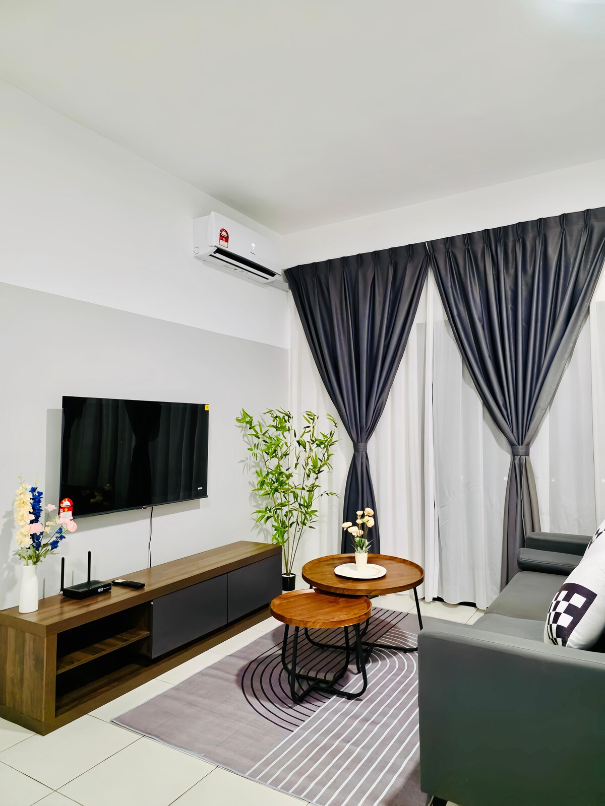 Appartament b' żewġt ikmamar tas-sodda mgħammar bi 3 air conditioners, internet b' veloċità għolja u l-aħħar wieħed huwa purifikatur tal-ilma ideali biex jilqa' 4 klijenti. Ambjent serju tal-art għolja, komplut b' pixxina u gym. Qrib l-Ajruport ta' KLIA, il-Malasja. Gawdi żjara mingħajr stress b' self checkin 24 siegħa kuljum, li tinsab biss 15-il minuta 'l bogħod mill-Ajruport Internazzjonali T1 jew T2. Kemm jekk għandek tluq kmieni filgħodu kif ukoll jekk għandek wasla tard, iffranka l-ħin u rrilassa qabel it-titjira tiegħek. Il-qabda hija disponibbli 24 siegħa kuljum