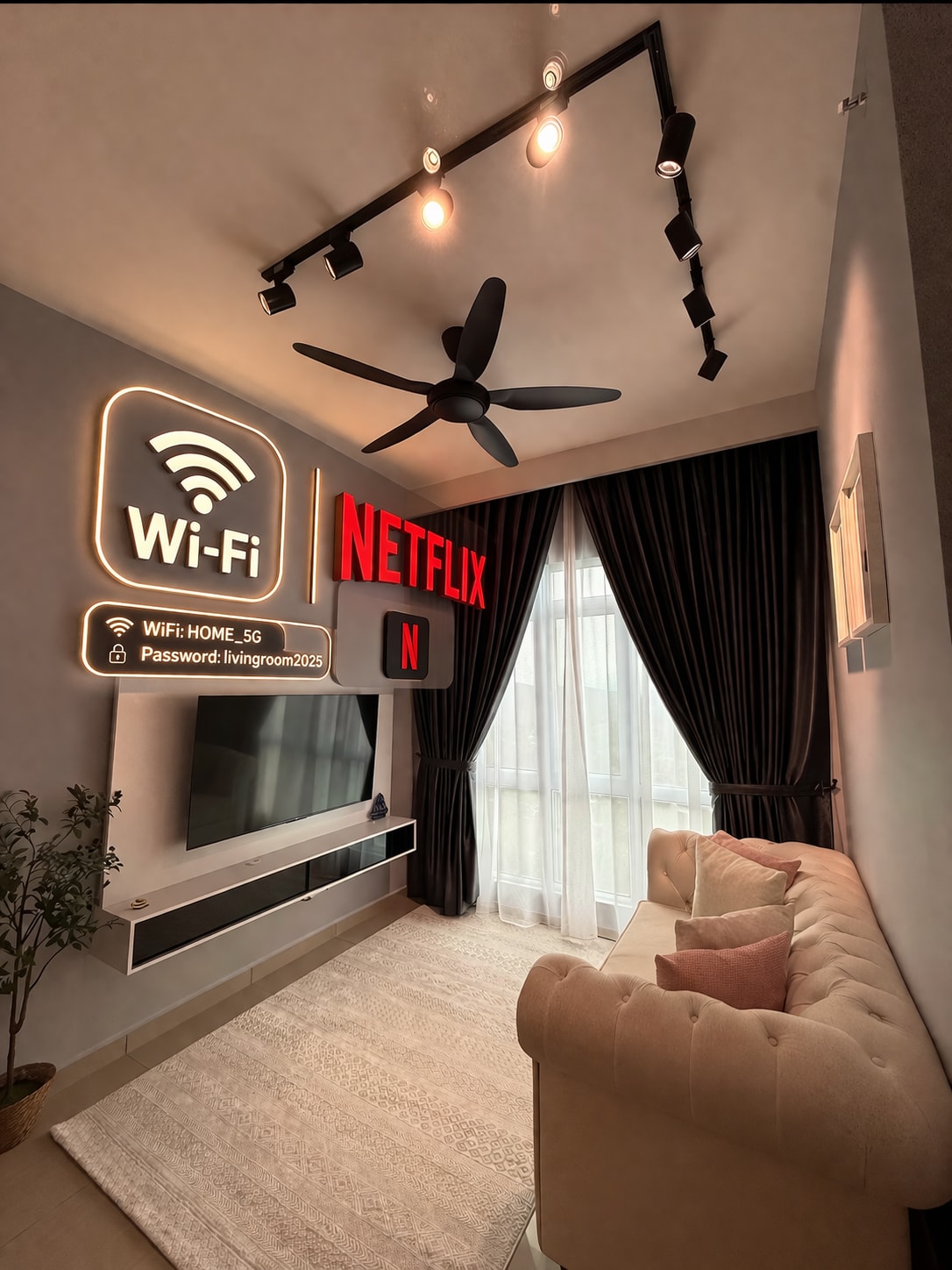 Internet b' Veloċità Għolja (500mbps)+Netflix+Android Box Esperjenza l-fużjoni ta' 'Stil Industrijali Modern' u' Għamara Magħmula Personalizzata' li toħloq taħlita komda ta'' Hygge' madwar id-dar kollha. Iddisinjajnaha biex ngħinuk tħossok komdu/a daqslikieku kont id-dar tiegħek stess. Dan il-post fejn toqgħod jinsab strateġikament fil-Belt ta' Nilai, biex b' hekk jiżgura aċċess faċli għal KLIA, Bangi, Putrajaya, il-Belt ta' Hamilton Nilai, Mitsui Outlet PARK, Aeon Mall, Gamuda Splash Mania, Nilai 3, USIM, Inti, Manipal,eċċ.