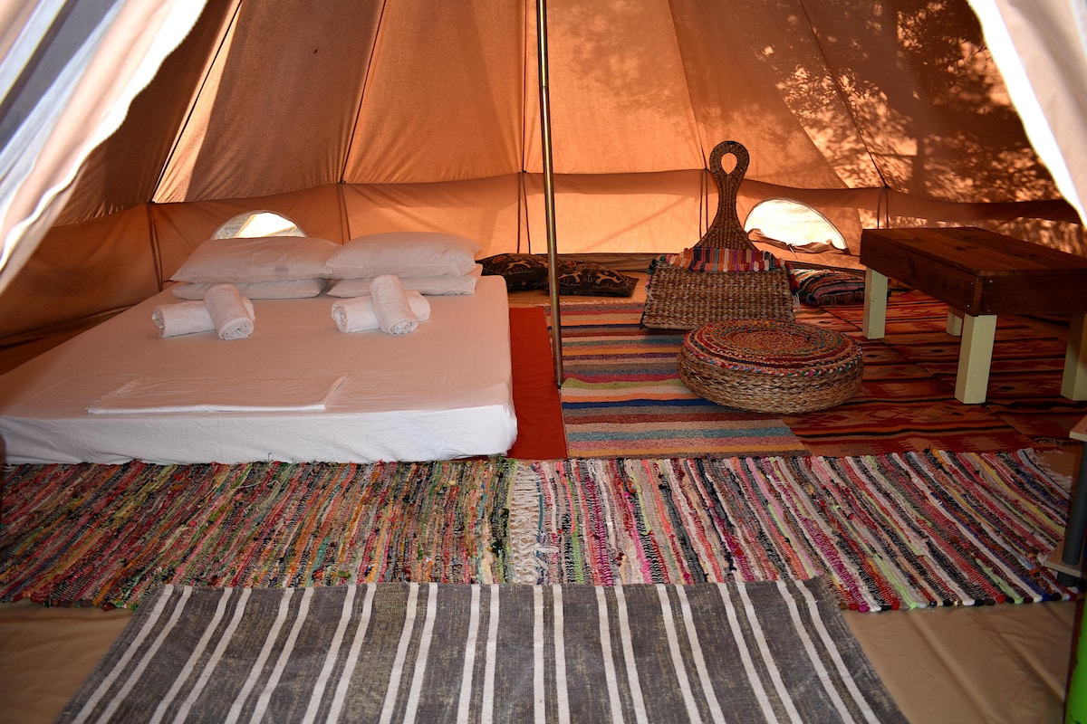 The stay concerns one private eco tent within Skiaxtro Cocoon Retreat, a 4.3-acre eco farm designed as a place of slowing down, rest and reconnection with nature. Located just 200 meters from the sea and 500 meters from the village of Marathopoli, Skiaxtro offers a sense of retreat without isolation. This is not a typical accommodation, but a quiet place of hosting in nature, ideal for guests seeking simplicity, silence and presence.