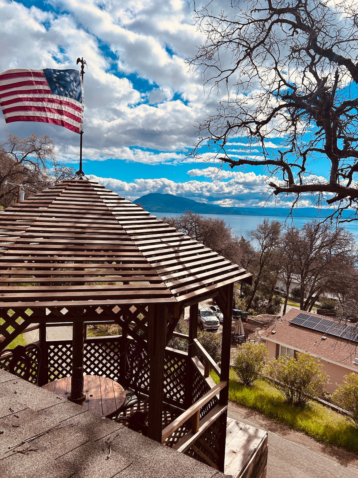 Terrazzin Ġdid Sbieħ b'Gazebo ta' 10'x10'! Veduti mill-isbaħ ta' Mount Konocti u Clearlake, l-akbar lag tal-ilma ħelu f'Kalifornja. Cottage (B) $ 15 tariffa għat-tindif tal-pets addattata għall-pets imħallsa f' kaxxa li tissakkar. Oqgħod attent għall-hummingbirds qattiela, rangale ta' ċriev, Summien b'veloċità, Dundjani slavaġ. LOL IMPORTANTI għar-Residenti: ibgħatli messaġġ bir-raġuni għaż-żjara tiegħek. Ħafna problemi man-nies tal-post. (Festi, eċċ.) 99% tal-klijenti huma waqfiet jew btaliet ta' vaganzi. Għandi l-jedd li nikkanċella bookings li jħassbuni.