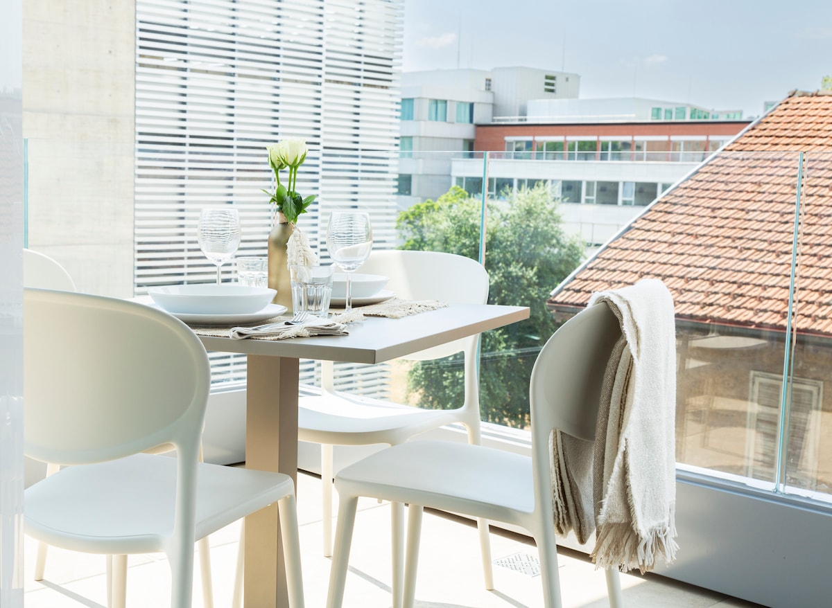Appartament modern b 'veduta tal-lag, fireplace u parkeġġ