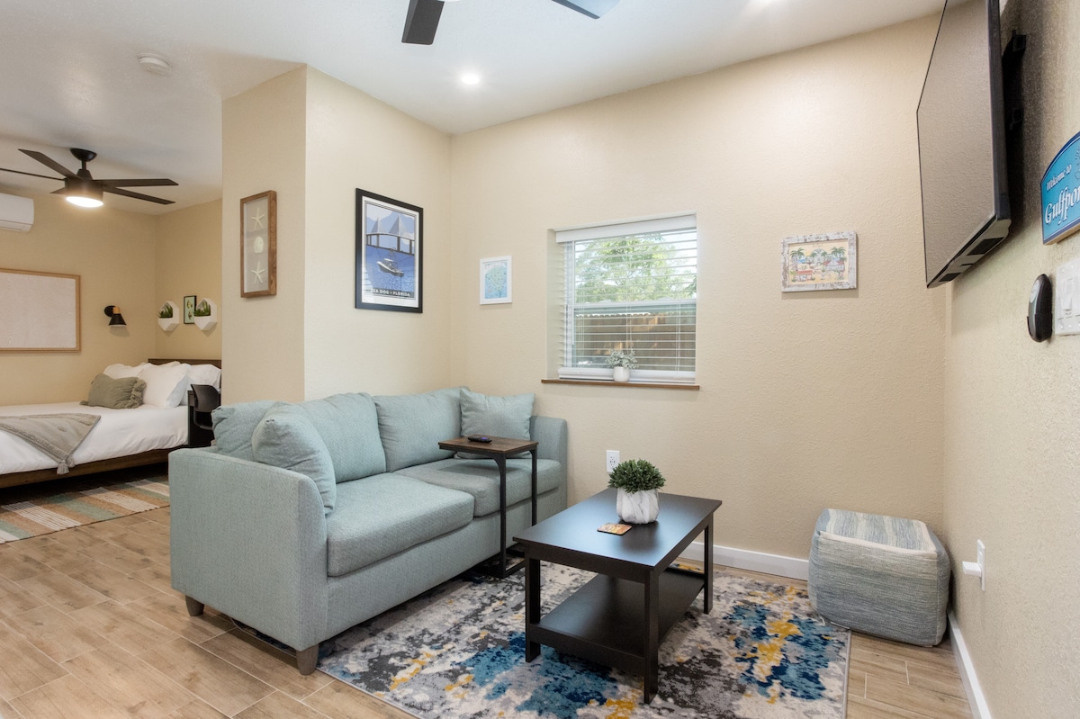 Studio mibni dal-aħħar -- spazju żgħir, disinn intelliġenti. Spazju ta' studio intima maħsub għal stil ta' ħajja minimalist b'kumdità sħiħa. Kumpatt iżda komdu, huwa l-post perfett għal irqad mistrieħ bejn l-avventuri ta' matul il-ġurnata tiegħek. Ħu ftit affarijiet, għix ħajja ħafifa. 3 blokok 'il bogħod mill-Iskola tal-Liġi ta' Stetson 3-4 blokok 'il bogħod mill-Mogħdija tal-Pinellas ~ 1.5 mili sa Gulfport' s Beach Blvd 3 mili sa Rebbieħ tal-Premju St. Pete Beach 4 mili 'l bogħod mill-Gżira tat-Teżor Rebbieħa tal-Premjijiet ~4.5 mili 'l bogħod miċ-Ċentru ta' San Pete