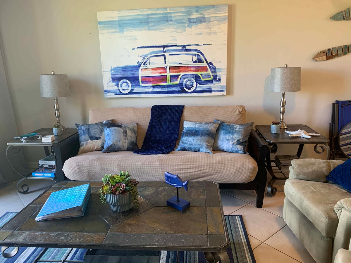 Merħba fil-kondominju tat-tieni sular tagħna b' veduta tal-oċean. Sodda waħda, kamra tal-banju waħda, 4 irqad, pet wieħed żgħir permess b' tariffa ta' $ 75. Kumditajiet moderni għal żjara komda. Ħerqana li nilqgħu lilek u lil sħabek bil-fer! DBPR CND6600054 Fort Pierce BTR:22-00032305 STR Reġistrazzjoni:22-32305 Massimu ta '3 adulti flimkien ma' tfal Karozza massima- 2 Il-Fuljett ta' Viċinat Tajjeb huwa disponibbli fuq il-websajt tal-belt u ritratti fuq dan ir-reklam.
