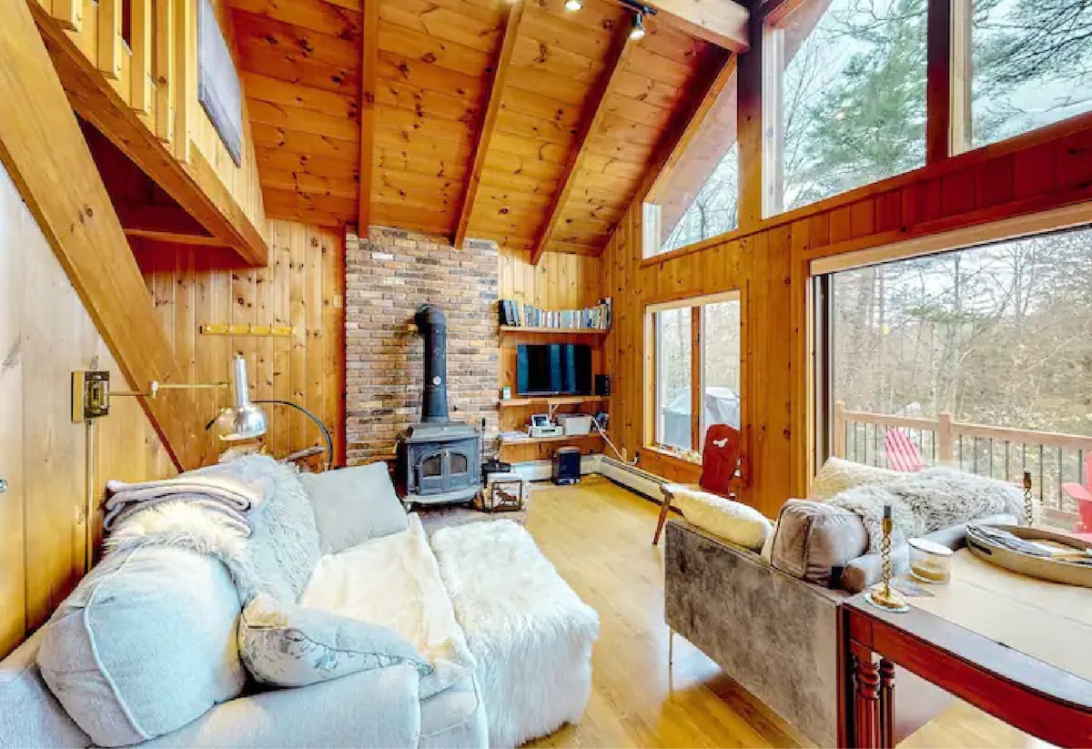 Mur 'il bogħod għall-Kabina Pine Ridge! Kabina tal-injam quintessenzjali maqtugħa minn Vermont li tinsab taħt korsa mimlija l-arżnu. Ħu l-kafè ta 'filgħodu tiegħek fuq il-gverta kbira madwar il-gverta li tħares lejn Elm Brook qabel il-hiking tal-ġurnata tiegħek, birrerija hopping, jew tolqot l-għoljiet! Il-kabina tipprovdi pjanijiet ta 'sular miftuħ iċċentrati madwar il-fireplace kbir tal-wiċċ tal-ġebel, l-ispazju perfett għal laqgħat ta' familja, ħbieb jew irtir ta' koppji! Il-Kabina Pine Ridge tinsab biss ftit minuti 'l bogħod mill-belt, mix-xiri, mir-ristoranti, mill-bars u mill-ispas!
