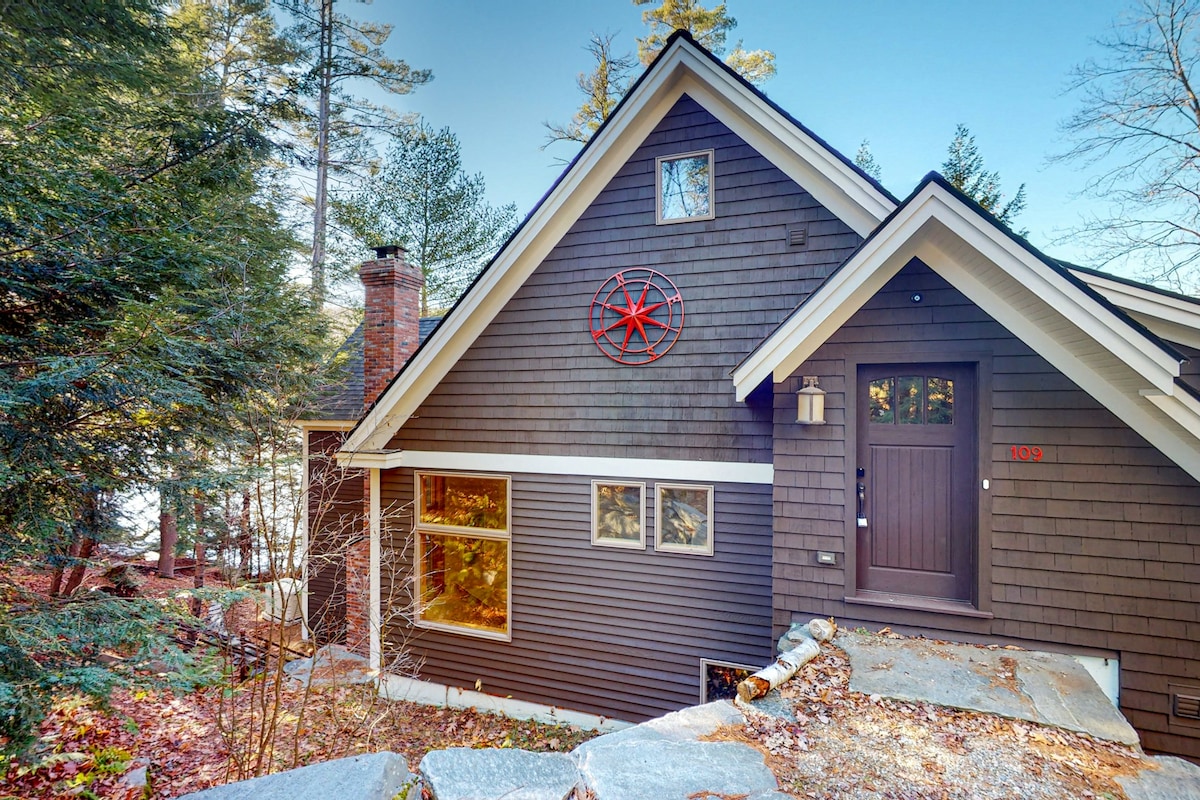 The Treehouse at Duck Cove is a 3BR/2BA Vermont lakefront cabin on Lake Rescue in Ludlow. Fost l-arżnu għoli, hemm kamra mill-aqwa b' żewġ sulari, kċina mgħammra b' kollox u veranda mgeżwra b' veduti mill-isbaħ tal-lag. Fis-sajf, gawdi aċċess privat għall-bajja, għawm, sajd, kayaking u fireplace fuq barra. Fix-xitwa, mur fuq il-lag iffriżat biex tiskejja, iżżur is-silġ jew taċċessa mogħdijiet kbar-plus OKEMO skiing ftit minuti 'l bogħod. Jorqod 7, addattat għall-familji, b' ikel u hiking fil-qrib.