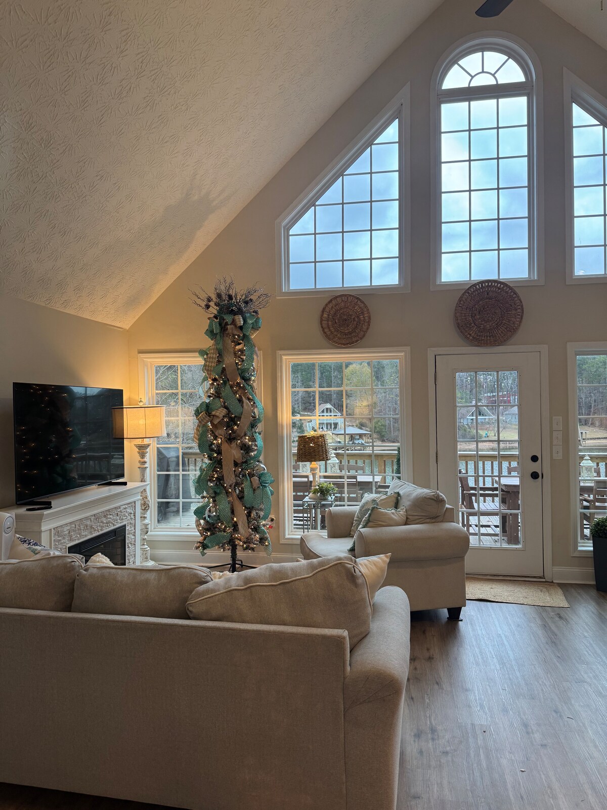 Dar mill-isbaħ mal-ilma fuq il-Lag Sinclair fiż-żona kwieta ta' Twin Bridges, ideali għall-familji. Post li jaċċetta l-pets b'pixxina privata, moll u veduti mill-isbaħ tax-xemx nieżla. Imġedded kollu għall-2026: terrazzin/baċir tal-kompost, dekorazzjoni ġdida tal-kamra tas-sodda, blinds li jdallmu l-kamra, 2 kmamar tas-sodda kbar b'fireplaces elettriċi. 15-il minuta biss 'il bogħod minn Milledgeville. Divertiment f'viċinat kwiet: għum, agħmel xi grill, irrilassa! Qed tivvjaġġa bid-dgħajsa? Ikkuntattjana l-ewwel (spazju limitat ta' 5-6 piedi bejn il-pont u d-dgħajsa). Il-vaganza komda tiegħek għall-familja qed tistenniek!