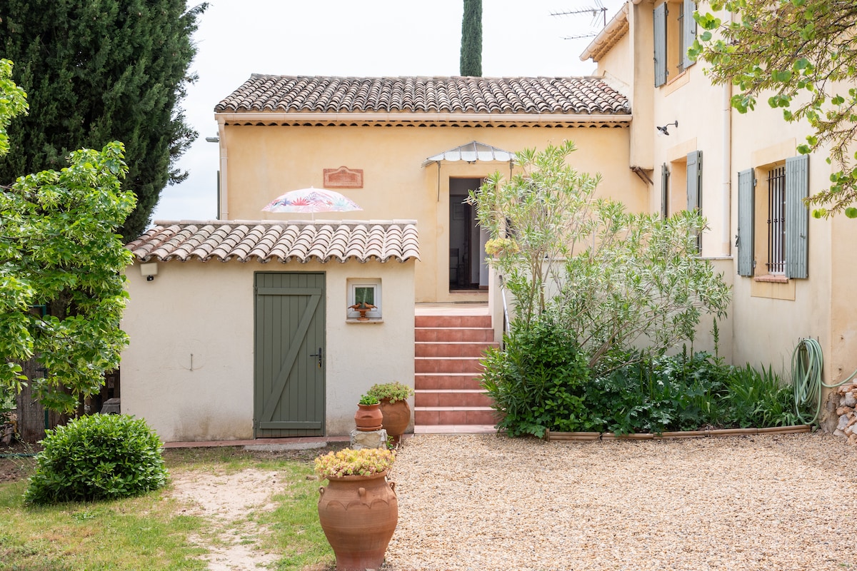 1.7km 'il bogħod miċ-ċentru tar-raħal, fi proprjetà fil-kampanja ta' tradizzjoni provencali pura, noffru attività T2 ta' 40m2, kompletament rinnovata fi stil komdu, ħdejn id-dar tagħna iżda kompletament indipendenti - Terrazzin privat b' veduti rari - Aċċess għall-pixxina fis-sajf (ara l-kundizzjonijiet u r-regolamenti) - Ideali għal koppja li tħobb il-kalma u timxi mid-dar bejn id-dwieli, l-għelieqi u s-siġar tal-arżnu - Parkeġġ garantit.