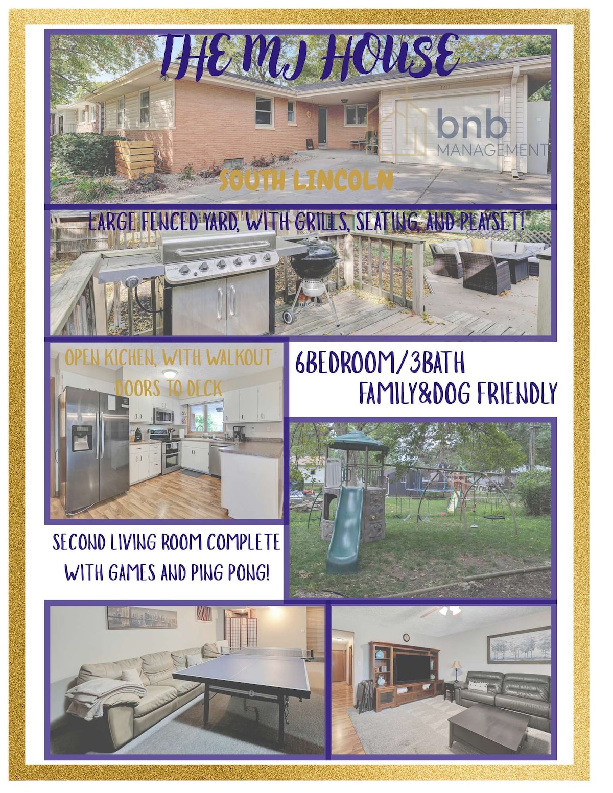 Located a short walk from Memorial Stadium, Bob Devaney Sports Center, and near downtown, Pinnacle Bank Arena, interstate and more… This modern 4 BD/2 BA home’s interior features luxury finishes, sleek kitchen, tons of lighting, large living room, wet bar, fish tank and laundry room. The exterior provides tons of parking, grill, huge patio with firepit and custom built playhouse with rock wall, swings and slide. Self check-in is a breeze this unique and family-friendly home.