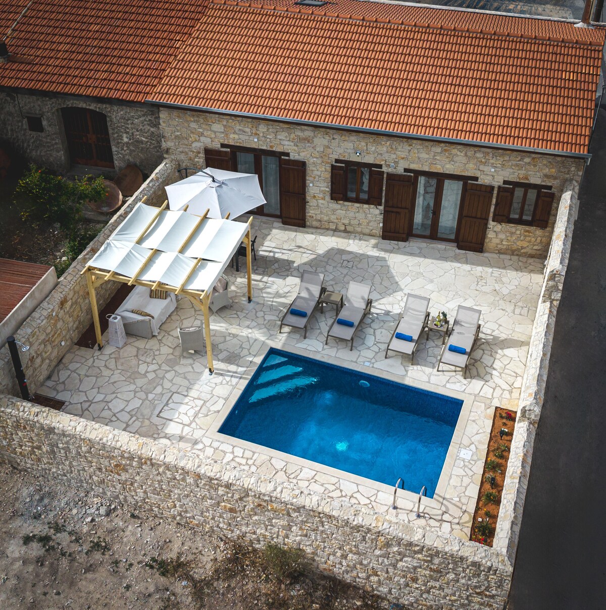 Għix esperjenza li qatt ma rajna bħalha qabel f 'dar ta' raħal tradizzjonali (li tmur lura għall-1878) li ġiet rinnovata kompletament dan l-aħħar. Gawdi bitħa enormi mtarrġa, taħt is-siġar b 'dawl iddisinjat bir-reqqa. Veduta eċċellenti lejn in-Nofsinhar u l-Lvant, bitħa tas-siġar fil-Punent b' siġar tal-arżnu li joffru dell fiżiku għall-bitħa mtarrġa. Id-dar hija ideali għal koppja waħda jew tnejn jew għal familja b 'tifel jew tifla waħda jew tnejn. Ara l-logħbiet taċ-Champions League u tal-Premier League ħdejn in-nar b 'tazza inbid!