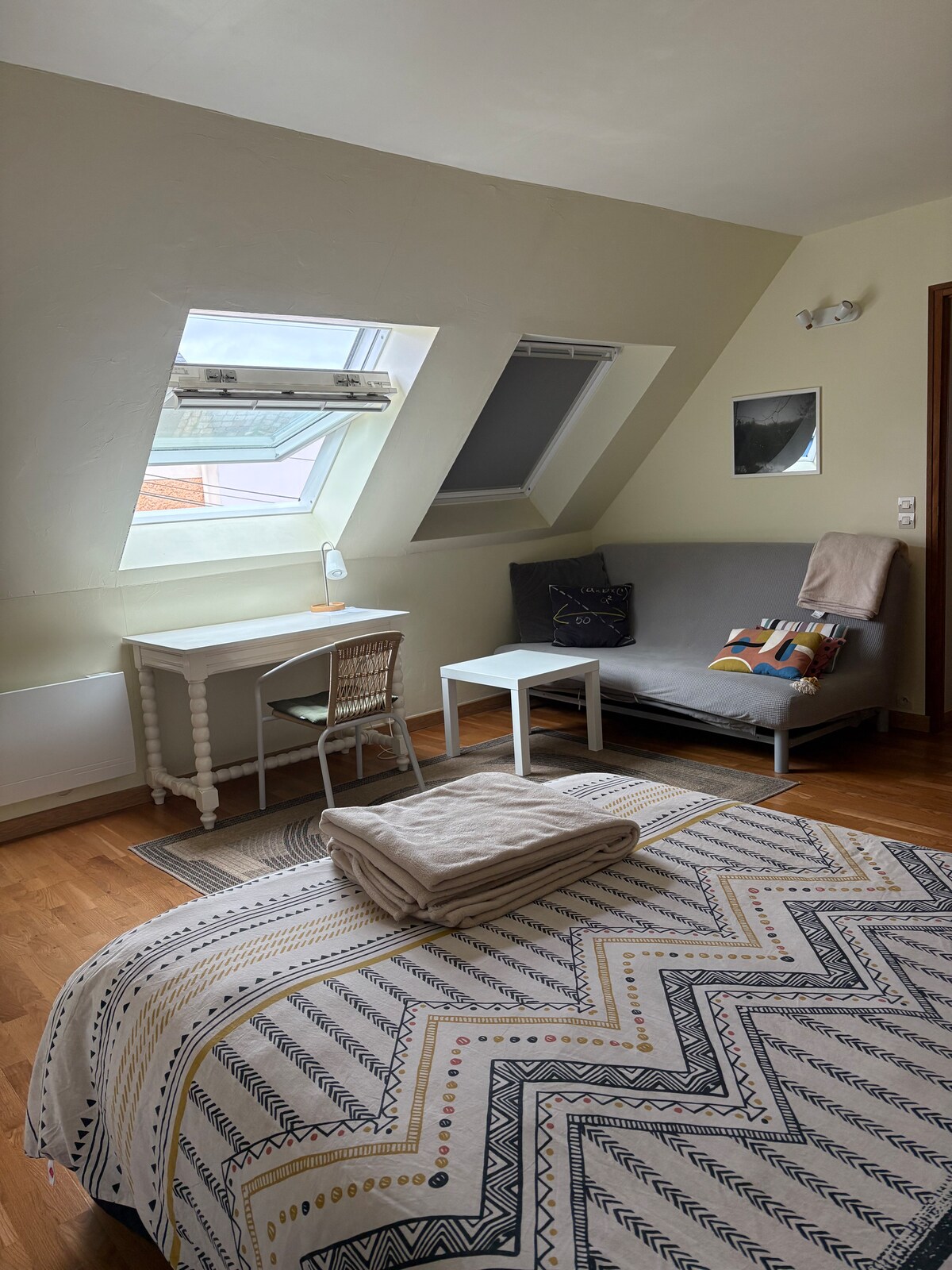 Merħba f' Ty Bihan! Post sabiħ maħsub għalik, kemm jekk qed tivvjaġġa bħala koppja, mal-familja jew għan-negozju. Fuq nett f' din it-townhouse ta' 59 m², qed tistenniek żewġ ikmamar tas-sodda b' sodod doppji. Salott komdu, arja kkundizzjonata, kċina mgħammra, internet bil-fibra: kollox lest. Wara li tibbukkja, gwida se turi l-aħjar indirizzi lokali tagħna. Tixtieq tieħu pawża vera? Ikklikkja fuq "Sir af iktar"!