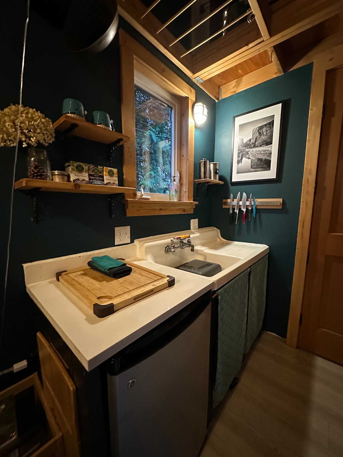 Dar żgħira privata fil-foresta mfassla għal filgħodu b’pass kalm u għal filgħaxija ħdejn il-franka tal-injam, ħames minuti biss miċ-ċentru ta’ Nelson. Itla' sas-sodda doppja mgħollija li għandha ġabra ta' kotba magħżula apposta, strieħ ħdejn in-nar u gawdi l-hot tub tagħna b'ilma minn nixxiegħa tal-muntanji. Ibbukkja s-sawna li taħdem bin-nar tal-injam (+$50) u l-vaska tal-ilma kiesaħ tal-istaġun biex verament tiġi f’tiegħek ġewwa Kootenay. Kwiet, minimalista u moħbi fis-siġar — iżda qrib il-mogħdijiet, il-postijiet għall-iskijar u l-belt.