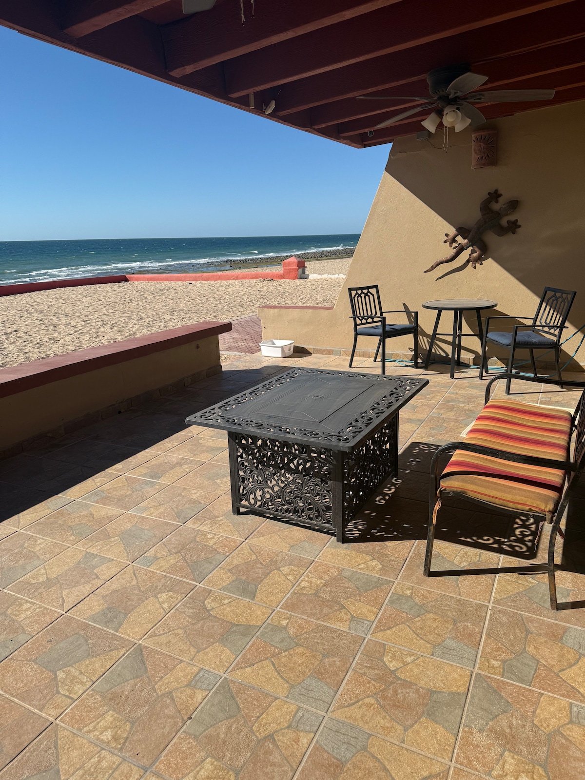 Villa sabiħa faċċata tal-bajja fuq il-Baħar ta' Cortez b' servizz tal-internet veloċi! Fiċ-ċentru ta 'Playa Mirador, din id-dar bi 3 kmamar tas-sodda u 3 kmamar tal-banju tinsab f' distanza qasira bil-mixi minn Manny' s Beach Club, Pitaya Bar u Pink Cadillac. Qatta 'l-ġurnata fuq il-bajja, imbagħad irrilassa u ara x-xemx mit-terrazzin il-kbir b' siġġijiet tas-salott, firepit u grill tal-BBQ. Id-dar hija perfetta biex tiddeverti b' shuffleboard u mwejjed tal-foosball, żewġ smart TVs ta' 50pulzier u kċina mgħammra b' kollox.