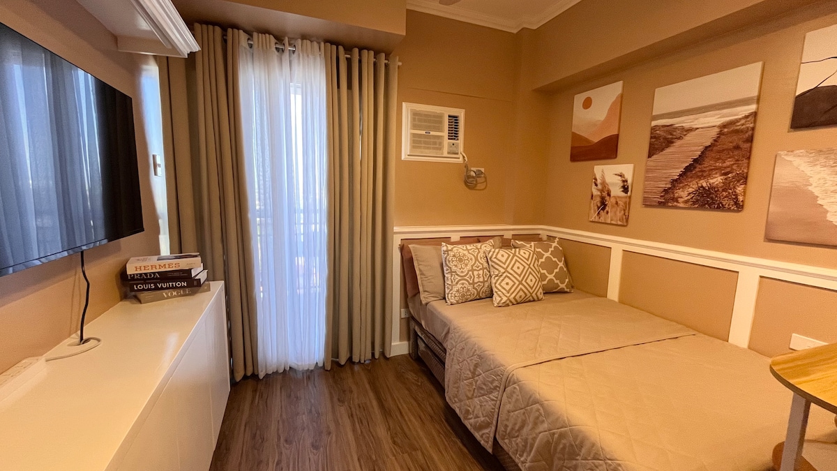 Gawdi minn unità komda ta' kamra tas-sodda waħda ġewwa South Residences, Las Piñas, ħdejn SM Southmall għal xiri u ikliet bla xkiel. Irrilassa ħdejn il-pixxina minn filgħodu sa lejl jew xandiriet fuq il-HDTV ta' 43 pulzier ma' Netflix. Żomm konnessjoni mal-Wi-Fi b' veloċità għolja u rrilassa fi spazju maħsub għall-kumdità. Ideali għall-vjaġġaturi jew għall-koppji li qed ifittxu post fejn toqgħod ġewwa n-Nofsinhar ta' Metro Manila.