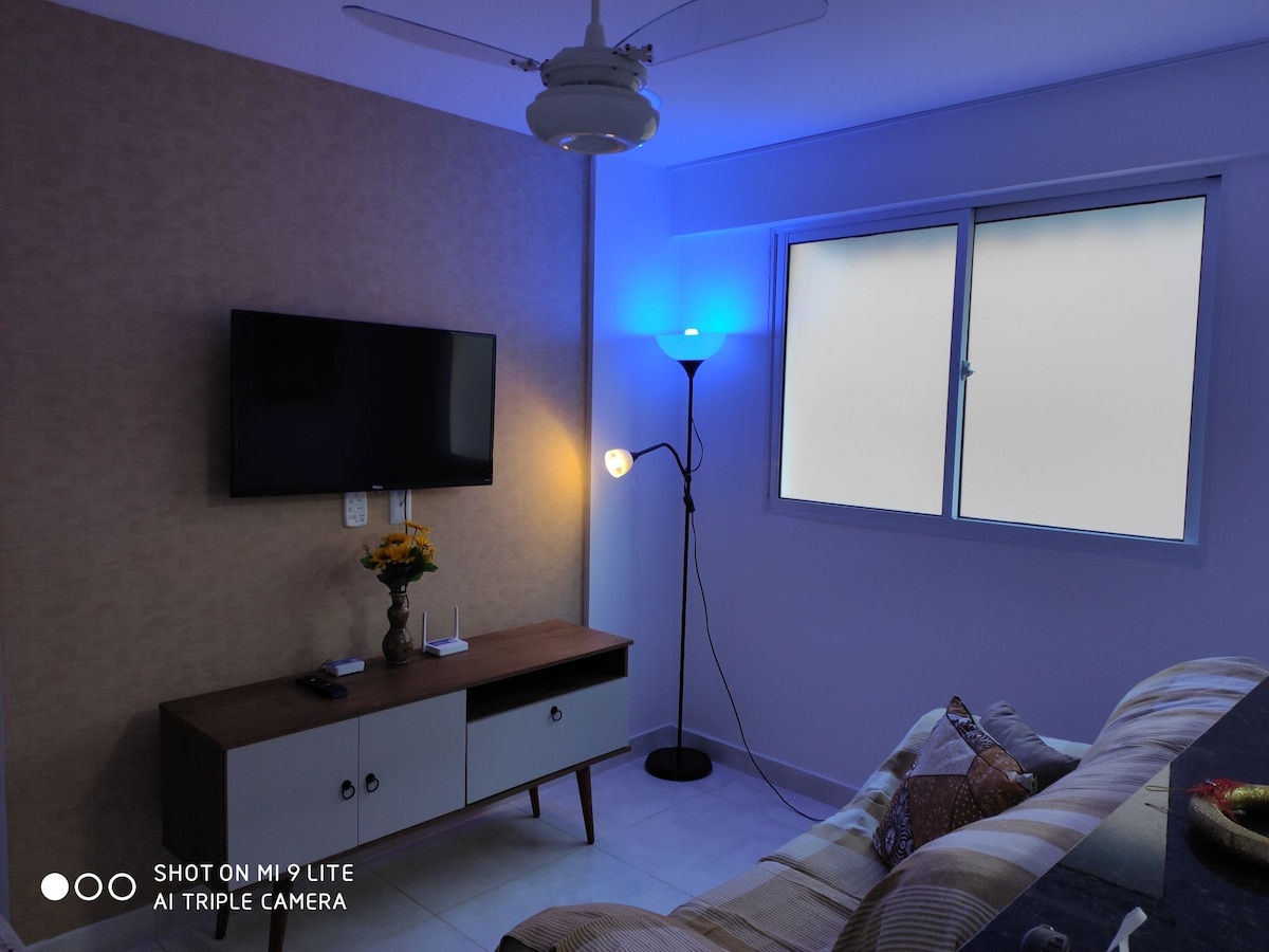 Appartament b 'veduta tal-baħar f' condo ħdejn il-bajja. Ideali biex tirrilassa mal-ħbieb, mal-familja jew waħdek. Kamra tas-sodda b 'air conditioner; Kamra tal-banju wiesgħa; Sufan sodda u Mejda tal-ikel fis-salott; gallarija tal-arja; kċina ntegrata b' blender, oġġetti tat-tisjir u oġġetti tal-mejda. Wi-fi disponibbli (Internet f 'fibra 30 Mega) - Tajjeb għall-ħaddiema tad-dar. L-aħjar post f 'Vilas: Bil-bajja, 8 km' il bogħod mill-Ajruport SSA u 5 km miċ-ċentru ta' Lauro de Freitas.