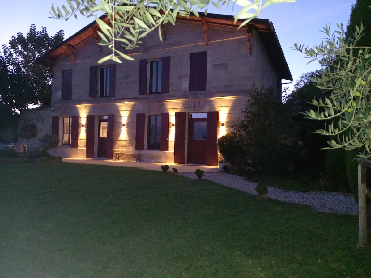 Détendez-vous dans ce logement unique et tranquille Jolie grange entièrement rénovée complètement équipé sur 75m2 avec deux chambres spa 2 places privé accessible même par mauvais temps grace à son abri Le logement est neuf avec parking, et accès privé. Idéalement situé à 100m du centre-ville et 20 min de Bordeaux. Pour 4 personnes maximum Nos amis les bêtes ne sont pas acceptés remarque: N'hésitez pas si vous avez des demandes (champagne, petit dej uniquement les week-ends )