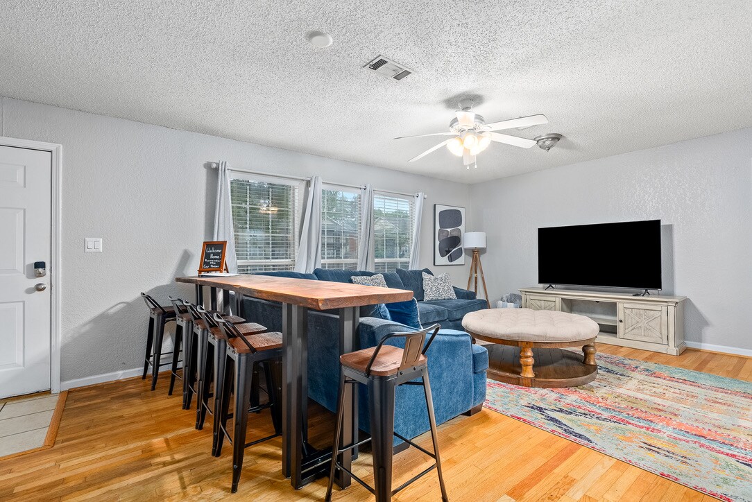 Oqgħod fil-qalba ta' Auburn! Din il-conddo ta' 4BR f' Eagle Point hija biss mixja qasira sa Toomer' s Corner, l-Università ta' Auburn u ċ-ċentru tal-belt. Għandha salott spazjuż b' TV intelliġenti ta' 65 pulzier, kċina mimlija drip u kafè Keurig u rqad flessibbli għal mhux iktar minn 8 klijenti. Gawdi minn smart TVs f' kull kamra, checkin faċli bil-keypad u żewġ passi tal-parkeġġ. Ideali għall-jiem tal-logħob, għaż-żjarat fil-kampus jew għall-vaganzi tal-familja!