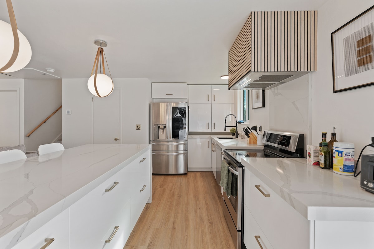 Imżejjen b 'mod sabiħ bungalow tal-briks ta' kamra tas-sodda waħda gawdi l-atmosfera lussuża iżda attraenti tal-kċina gourmet personalizzata bi gżira kbira, uċuħ tal-kwartieri, taħlita ta 'armarji solidi u tal-ħġieġ ta' quddiem li ma jsaddadx apparat intelliġenti mill-aqwa staqsi lid-direzzjonijiet ta 'Alexa, temp jew mużika tal-logħob u l-iskrin tal-Wi-Fi intelliġenti tal-friġġ LG se jwieġeb. Il-kamra tal-banju kollha bil-madum b 'ħġieġa tad-doċċa Ewropea, madum tas-subway, bexxiexa tax-xita bi pressjoni tal-ilma mill-aqwa Dan il-post uniku għandu stil waħdu.