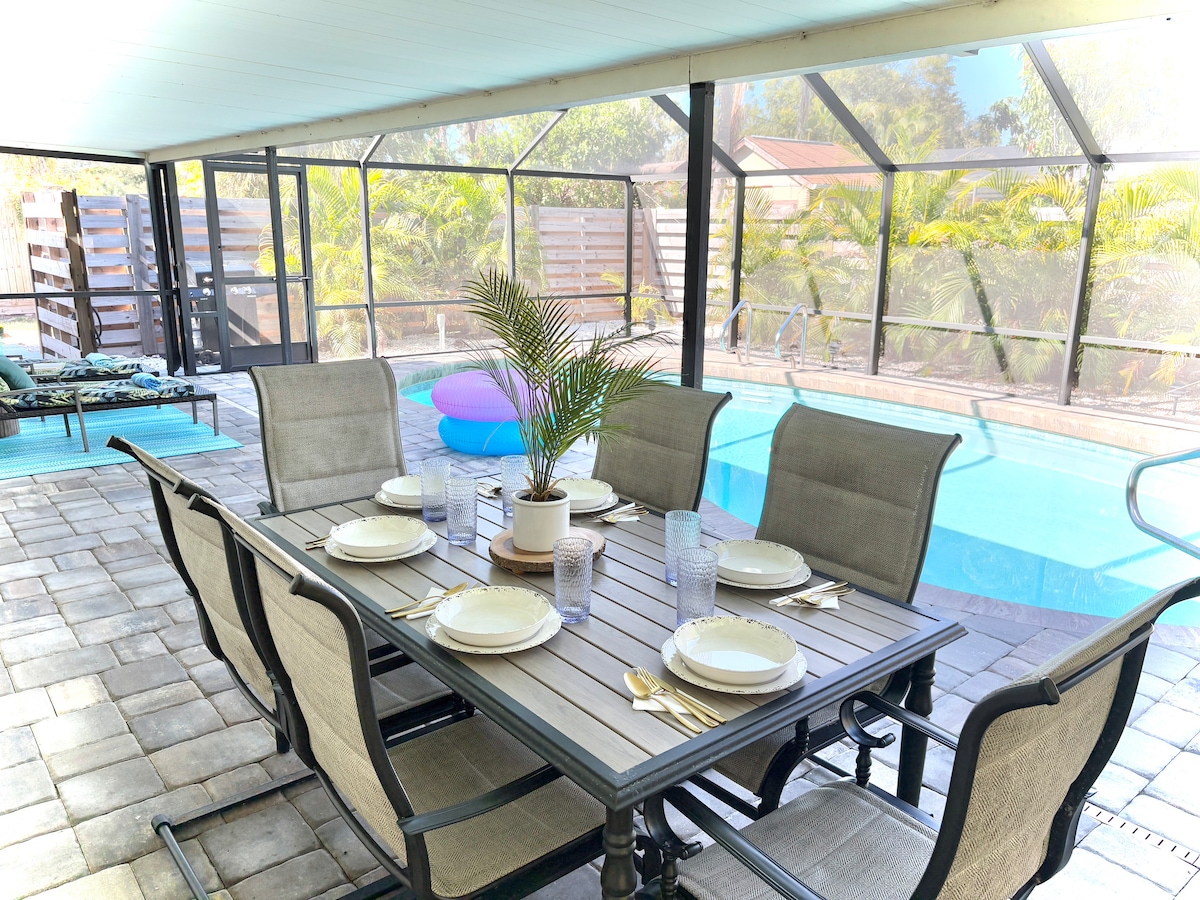 Karozza tal-golf bla ħlas INKLUŻA. B' mixja qasira lejn l-ilmijiet sħan tar-ramel u tal-kristall ta' Englewood Beach. Bil-kumditajiet moderni kollha li għandek tagħmel huwa li tirrilassa matul iż-żjara qasira jew iż-żjara fit-tul tiegħek. Aġġornat 2/2 dar ewlenija u 1/1 Casita b' daħla privata. Imxi dritt 'il barra mill-bieb ta' barra għat-terrazzin tal-pixxina li jespandi l-ġdid li fih pixxina msaħħna bl-ilma mielaħ, kċina fuq barra u ħafna għamara biex tqatta' l-ħin tixrob fix-xemx sħuna ta' Florida!