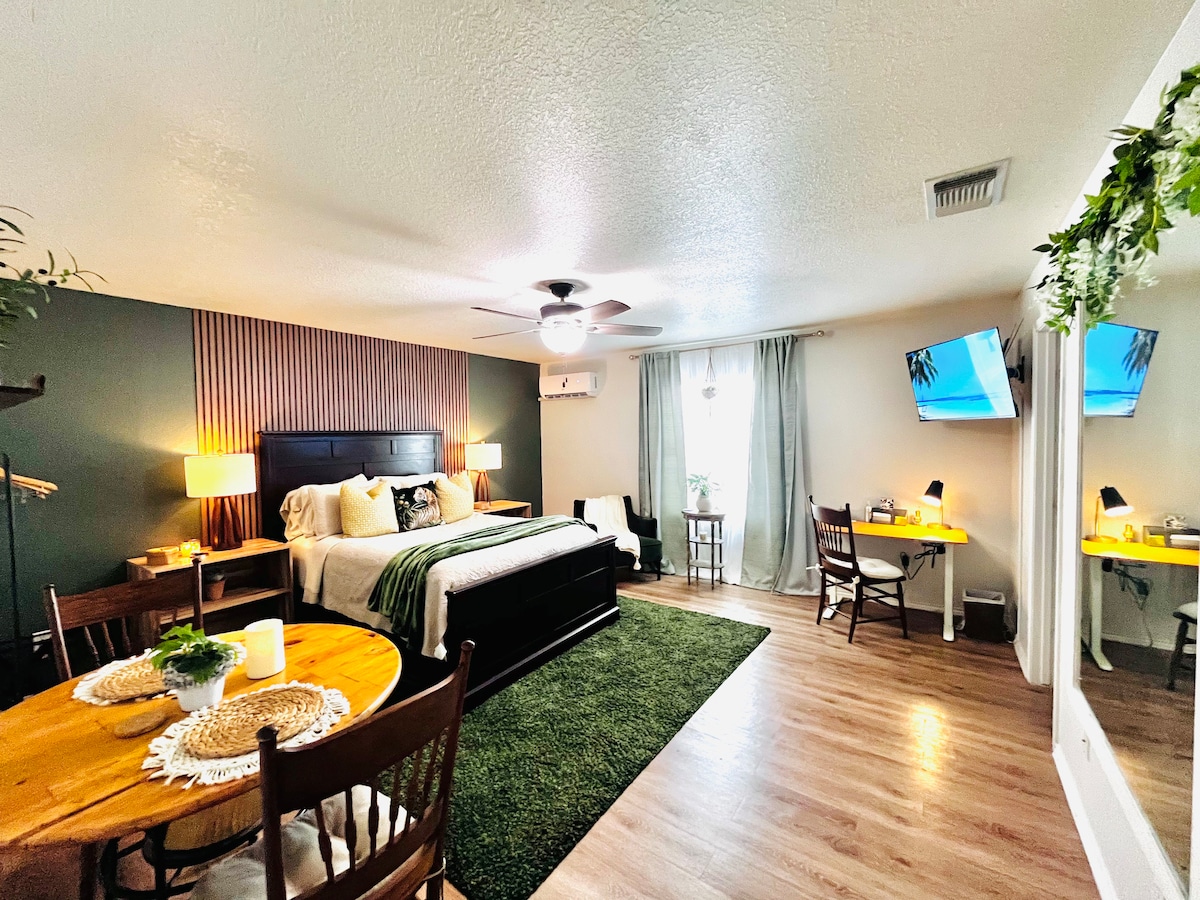 • Mur f' bitħa qisha ġnien, magħluqa u gawdi checkin privat mingħajr ċavetta. • Aċċess konvenjenti għall-eskursjonijiet The Pearl, RiverWalk, Medical Ctr u Hill Country. • Orqod tard fis-saqqu tal-fowm tal-memorja tal-plush tiegħek, imbagħad gawdi l-kafè tiegħek fuq it-terrazzin jew l-għadma tan-nar. • Ideali għal klijenti bi ħsieb ta' kwalità, għal dawk li jixtiequ jagħmlu x-xhur tal-għasel jew għal anniversarji! • Friġġ żgħir + Keurig + Microwave + Wi-FI veloċi. • • A/C mill-aqwa! Tindif bir-reqqa! • Gawdi l-firepit tagħna ! Qabbadna fuq il-lemin!