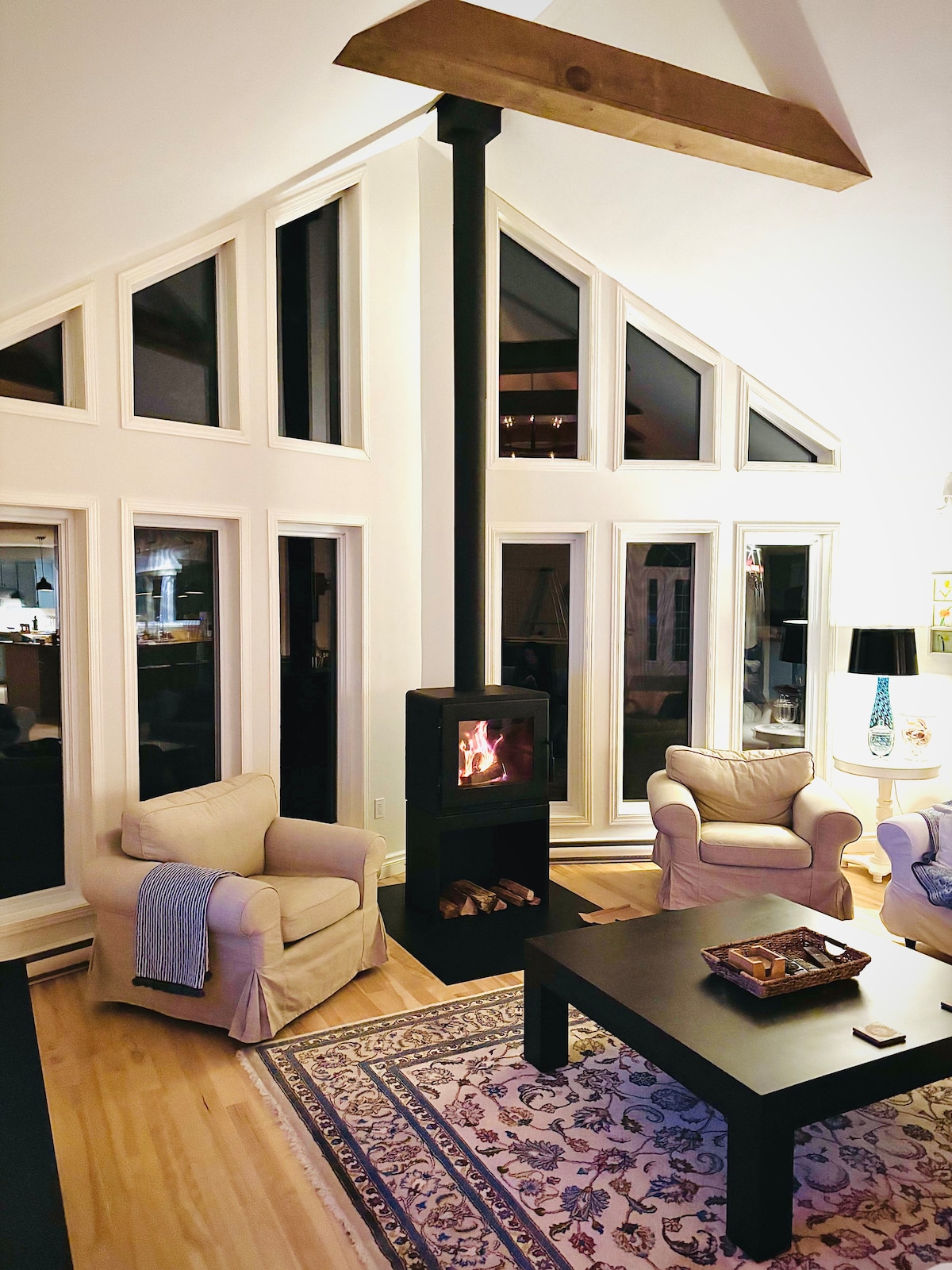 Merħba fil-kabina tal-kampanja moderna tagħna li tinsab fuq lott ta '2 acre f' Wakefield, Quebec. Ejja rrilassa u ċċarġja għal ftit jiem filwaqt li tieħu vantaġġ min-natura u mill-intern komdu b 'fireplace. Hemm ħafna x 'tista' tagħmel fil-qrib: skopri l-villaġġ ta' Wakefield, ir-ristoranti tiegħu, il-boutiques, l-irziezet, il-Gatineau Park, in-Nordik Spa, l-Eco-Odyssee, il-korsijiet tal-golf fil-qrib u l-għoljiet tal-iskijjar, eċċ. (Permess CITQ # 29 ° 30. Aħna nħallsu t-taxxi kollha fuq il-Bejgħ u d-Dħul lill-gvernijiet ta 'prova/mitmugħa).
