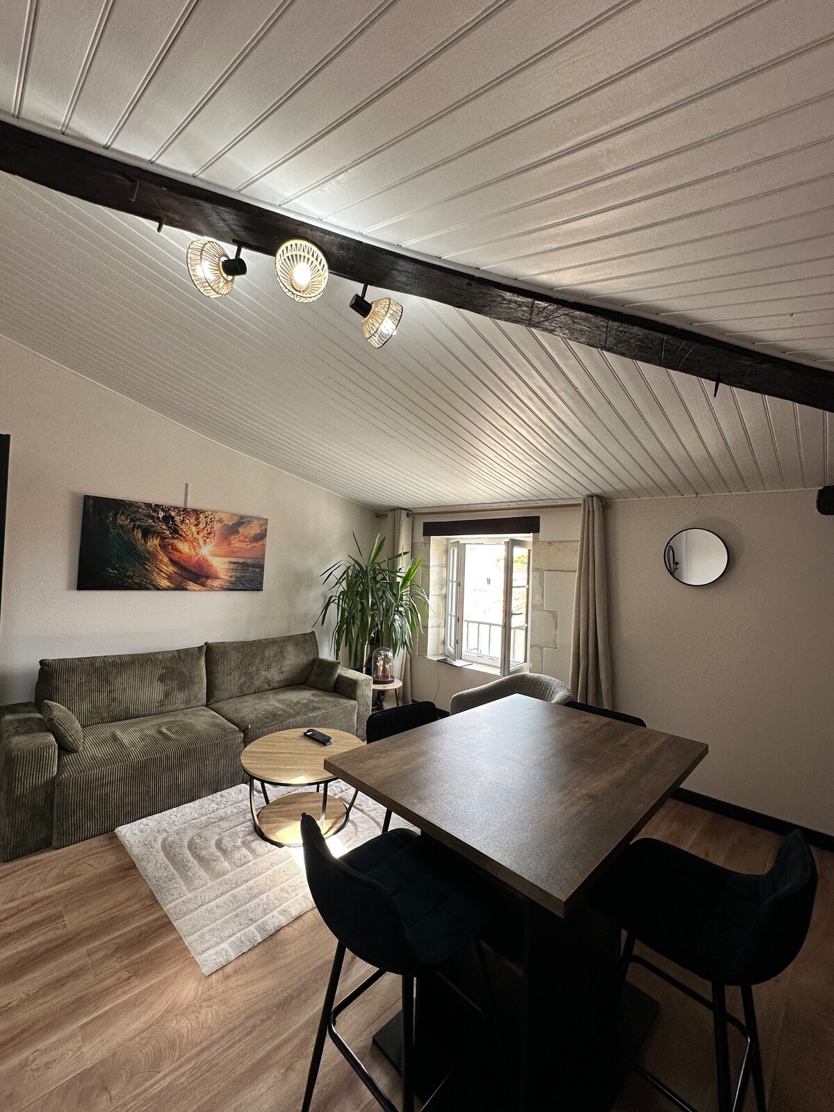 Dan is-sular terran mill-isbaħ-hotel jinsab f' viċinat kwiet ħafna, 300 metru 'l bogħod mill-bajja. Triq waħda se twasslek direttament lejn il-qalba ta' La Rochelle (3 minuti bil-karozza). Dan jikkonsisti f' salott kbir b' żona ta' rilassament u rqad (sufan sodda ta' 160 ċm), kamra tas-sodda separata, żona tal-ikel, kċina mgħammra b' kollox (cooker, microwave, friġġ, magna tal-espresso) u fl-aħħar nett kamra tal-banju. Spazju għall-parkeġġ bla ħlas huwa disponibbli għall-użu tiegħek.