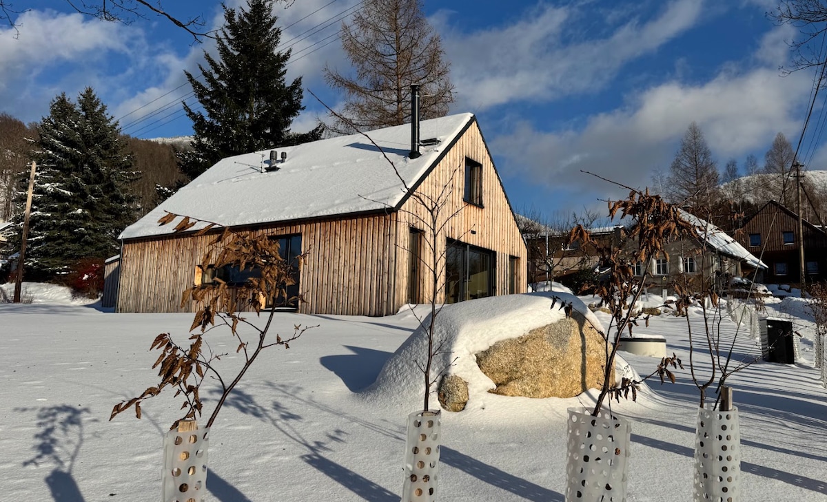 Il-bini modern tal-injam huwa cottage eleganti li għadha kif inbniet b' disinn modern, li tinsab fl-ambjent maġiku tal-Muntanji ta' Jizera ħdejn il-ġenna taċ-ċikliżmu - Singltrek pod Smrkem. In-natura tal-madwar tattira wkoll vjaġġi ta' mixjiet fit-tul u rilassament. L-għażla perfetta għal 2 - 3 familji bit-tfal, fejn il-ġenituri se jħobbu l-privatezza tal-kmamar tas-sodda t' isfel, filwaqt li t-tfal igawdu l-kamra tas-sodda atipika tal-loft. :)