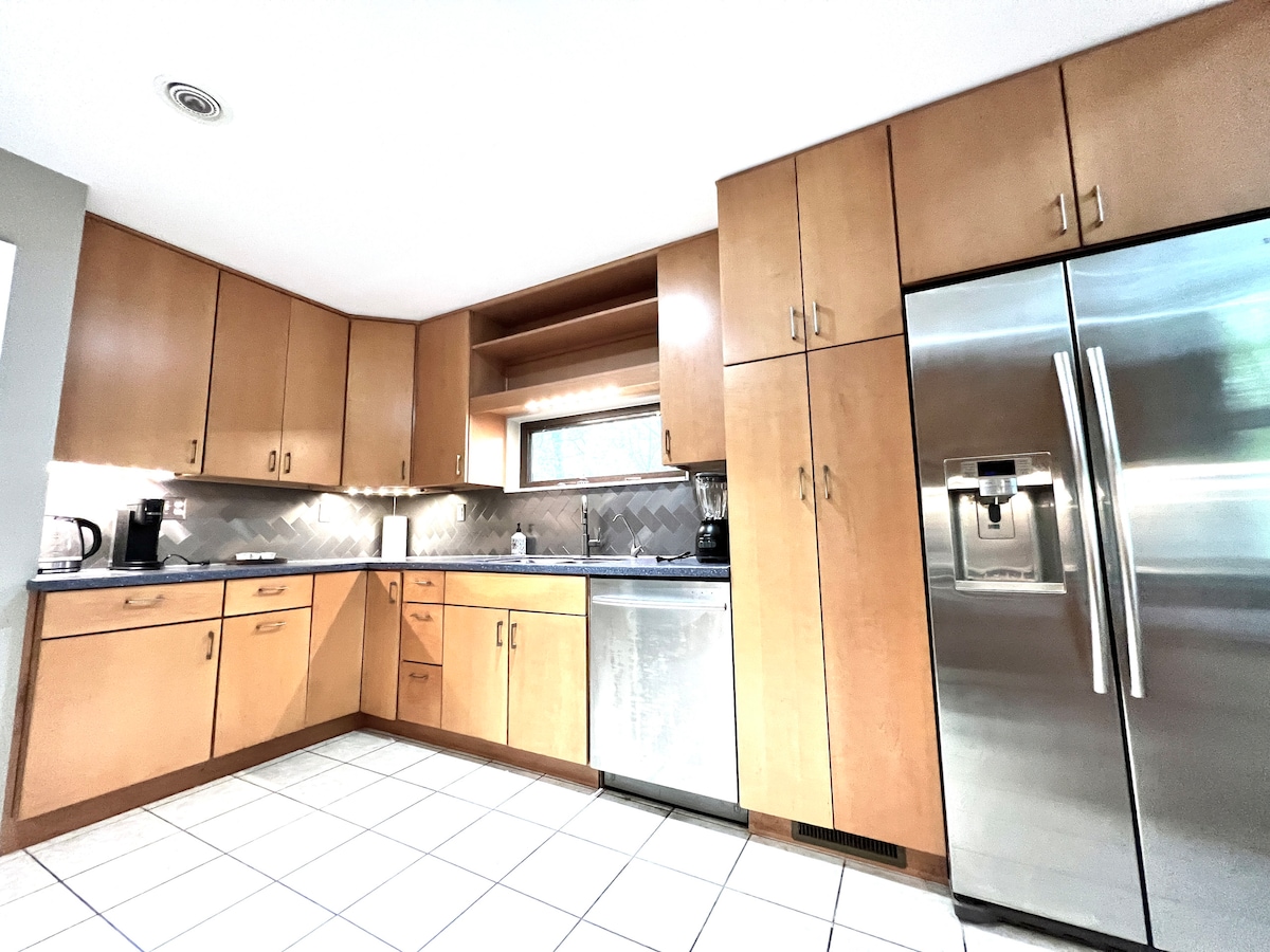 Din id-dar sabiħa ta' nofs is-seklu ġiet iddisinjata u mibnija minn missieru. Il-ġenituri tar-raġel tiegħi, Amy u Bob, xtrawh mill-patrimonju tal-ġenituri tiegħi u rranġawha. Hija mimlija dawl, kotba u arti oriġinali. Li tkun ġewwa tħossok qisek qiegħed fuq barra. Hija mgħammra ħafna kif kienet meta l-konjuġi tiegħi ħarġu, b' ħafna mill-pitturi ta' Amy. Mhux dar ġdida jew fancy, iżda hija awtentika u eżempju pjuttost mill-isbaħ tal-arkitettura ta' nofs is-seklu! Nispera li jogħġbok daqs kemm inħobb naqsamha mal-oħrajn!